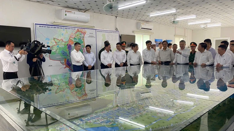 Tổng Bí thư Tô Lâm nghe báo cáo về quy hoạch Nhà máy điện hạt nhân Ninh Thuận. (Ảnh: Văn Nỷ).