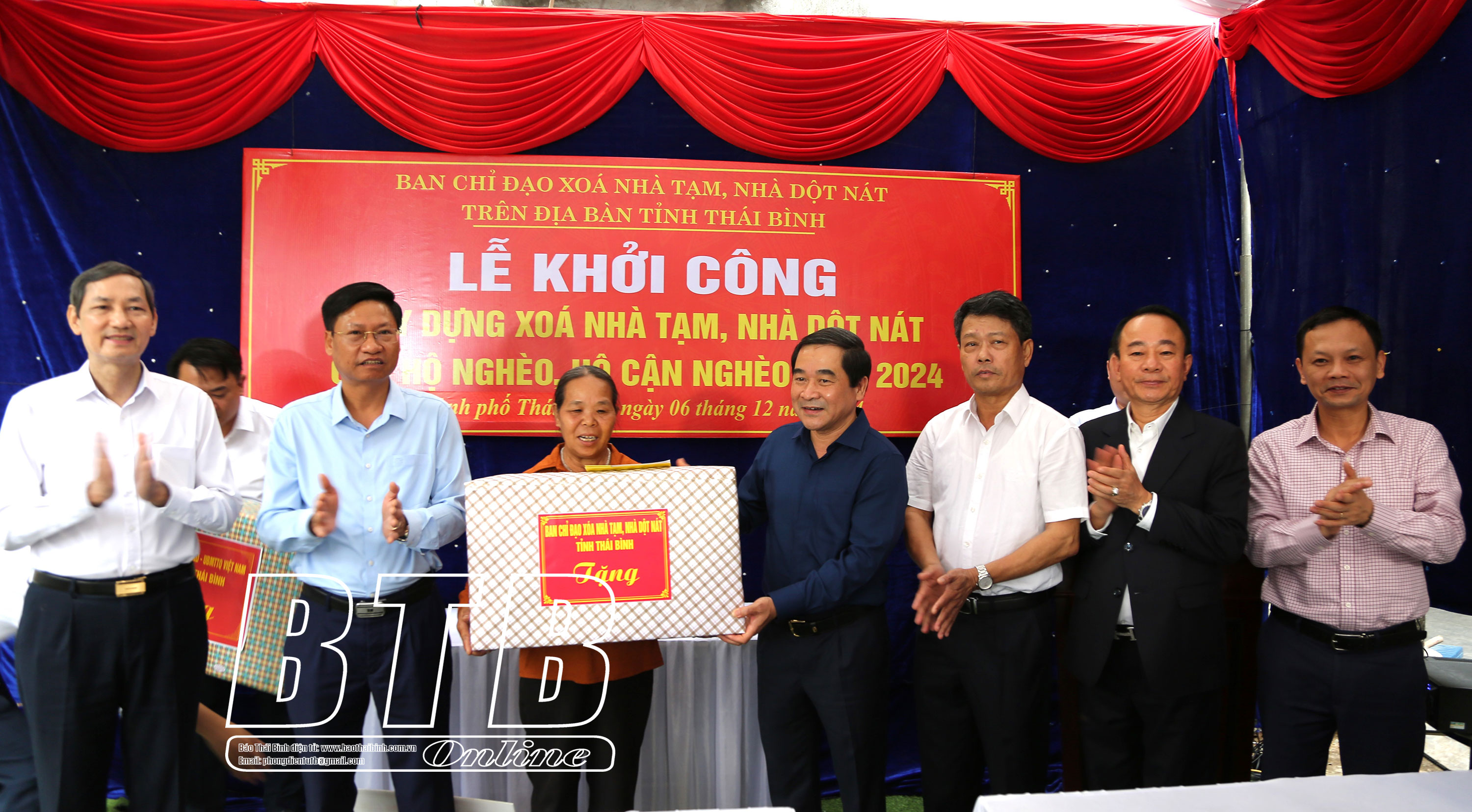 Sáng ngày 6/12, đồng chí Nguyễn Tiến Thành, Phó Bí thư thường trực Tỉnh ủy, Chủ tịch HĐND tỉnh, Phó Trưởng ban Chỉ đạo triển khai xóa nhà tạm, nhà dột nát trên địa bàn tỉnh dự lễ khởi công xây dựng xóa nhà tạm, nhà dột nát cho bà Vũ Thị Lụa, tại tổ 11, phường Hoàng Diệu (thành phố Thái Bình).