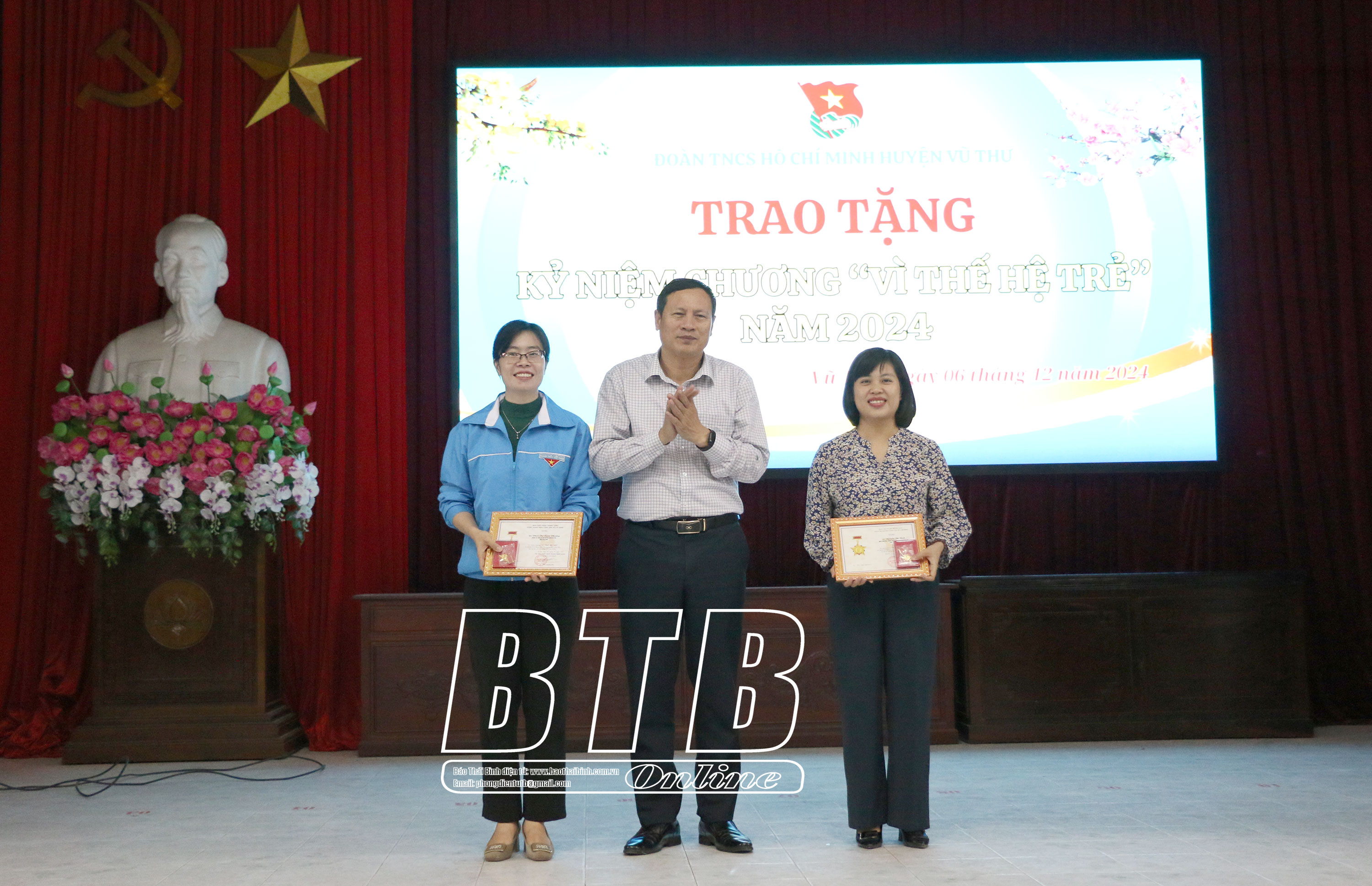 Lãnh đạo Huyện ủy Vũ Thư trao kỷ niệm chương “Vì thế hệ trẻ” của Trung ương Đoàn TNCS Hồ Chí Minh cho 2 cá nhân.