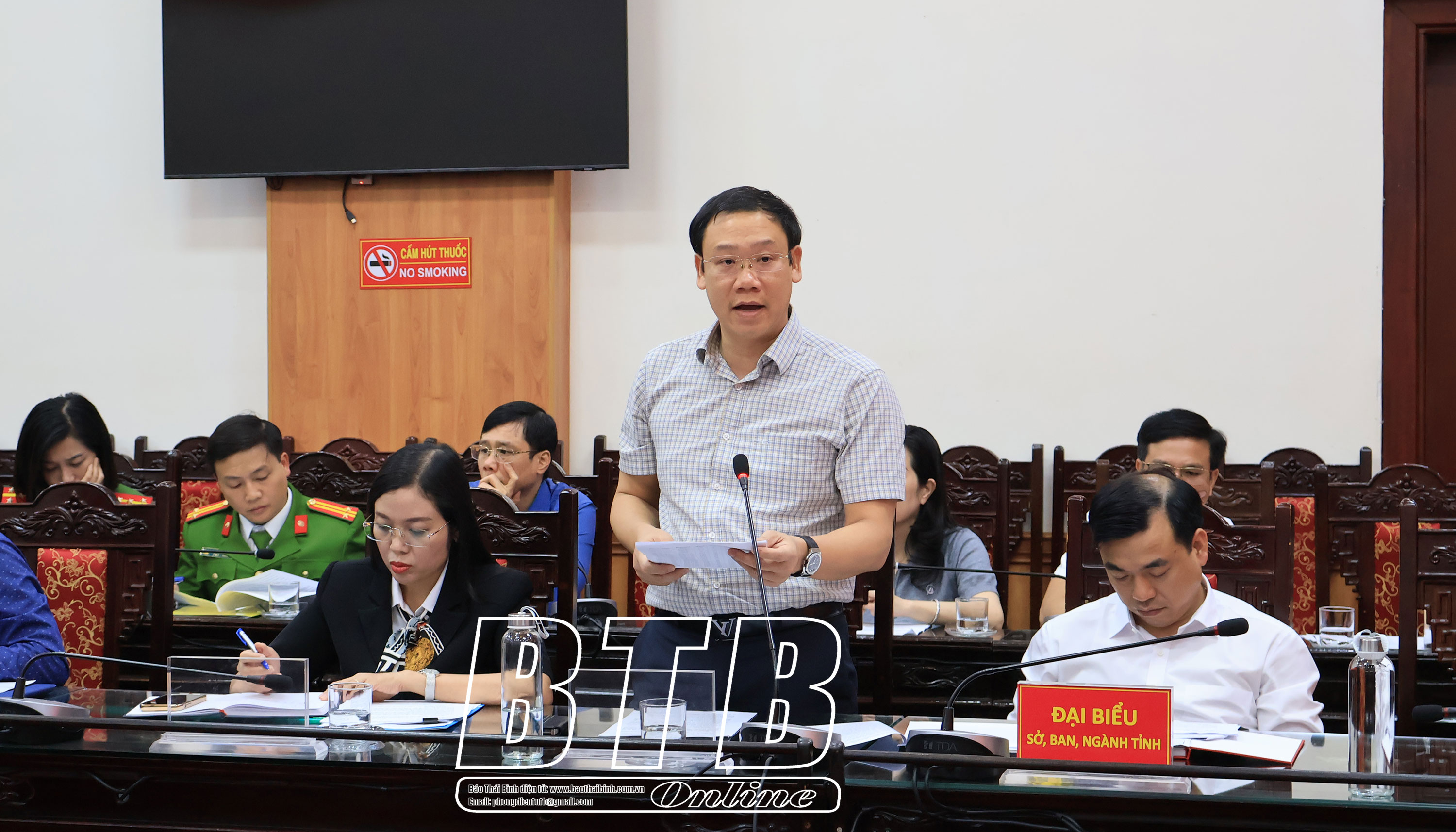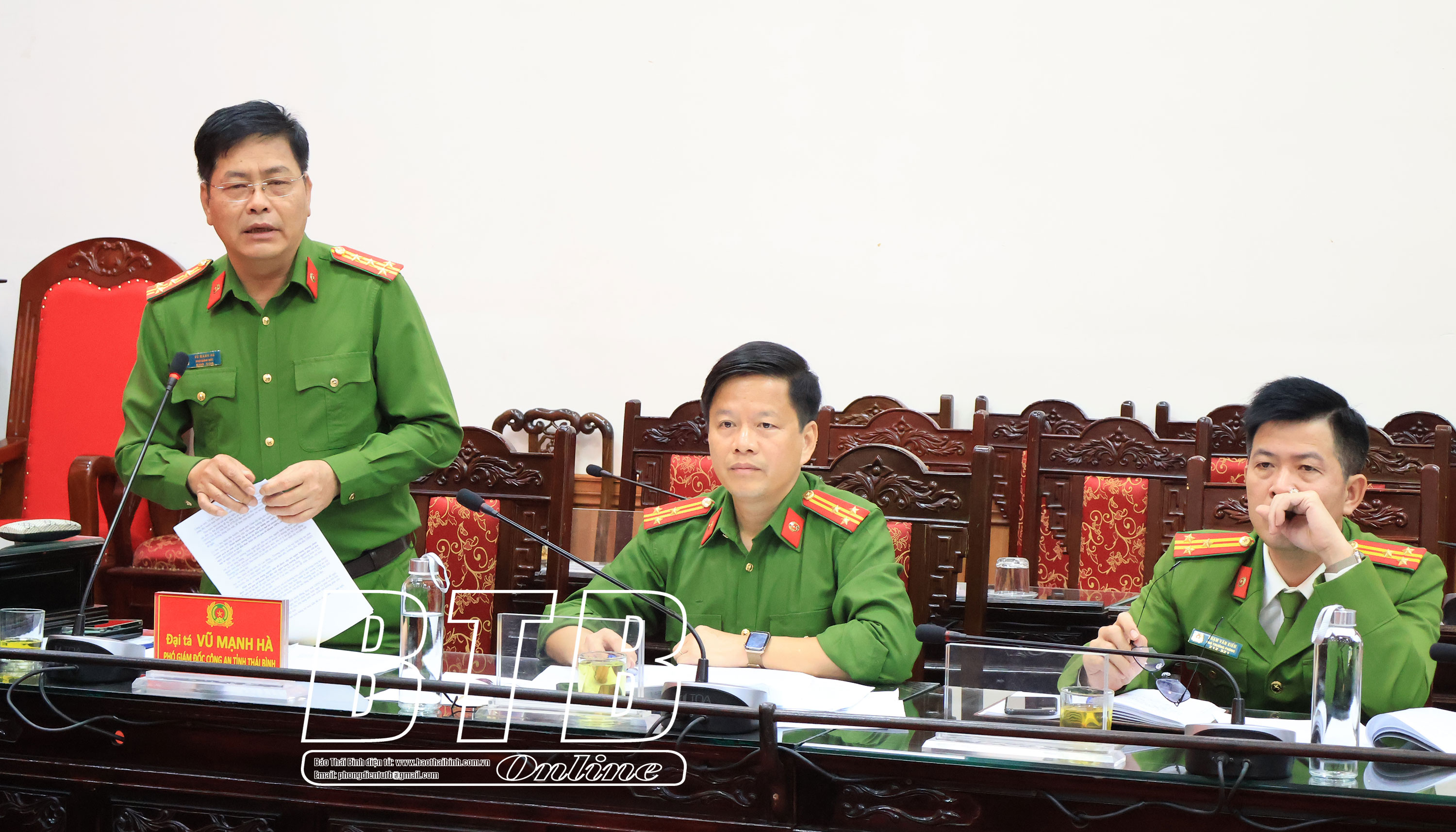 Đồng chí đề nghị Báo Thái Bình, Đài Phát thanh và Truyền hình Thái Bình phối hợp với Công an tỉnh, Sở Tư pháp, Sở Y tế tổ chức chuyên đề, phóng sự tuyên truyền để người dân hiểu sâu hơn những lợi ích về sổ sức khỏe điện tử và cấp phiếu lý lịch tư pháp trên VNeID, từ đó nhiệt tình tham gia.