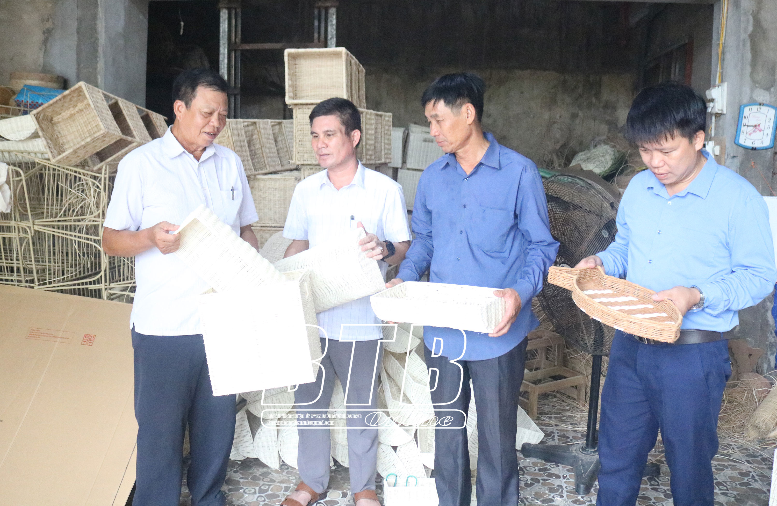 Ông Đỗ Duy Tự, Bí thư Chi bộ thôn Văn Lăng, xã Thống Nhất (người ngoài cùng bên trái) luôn gần gũi, động viên nhân dân phát triển nghề truyền thống.