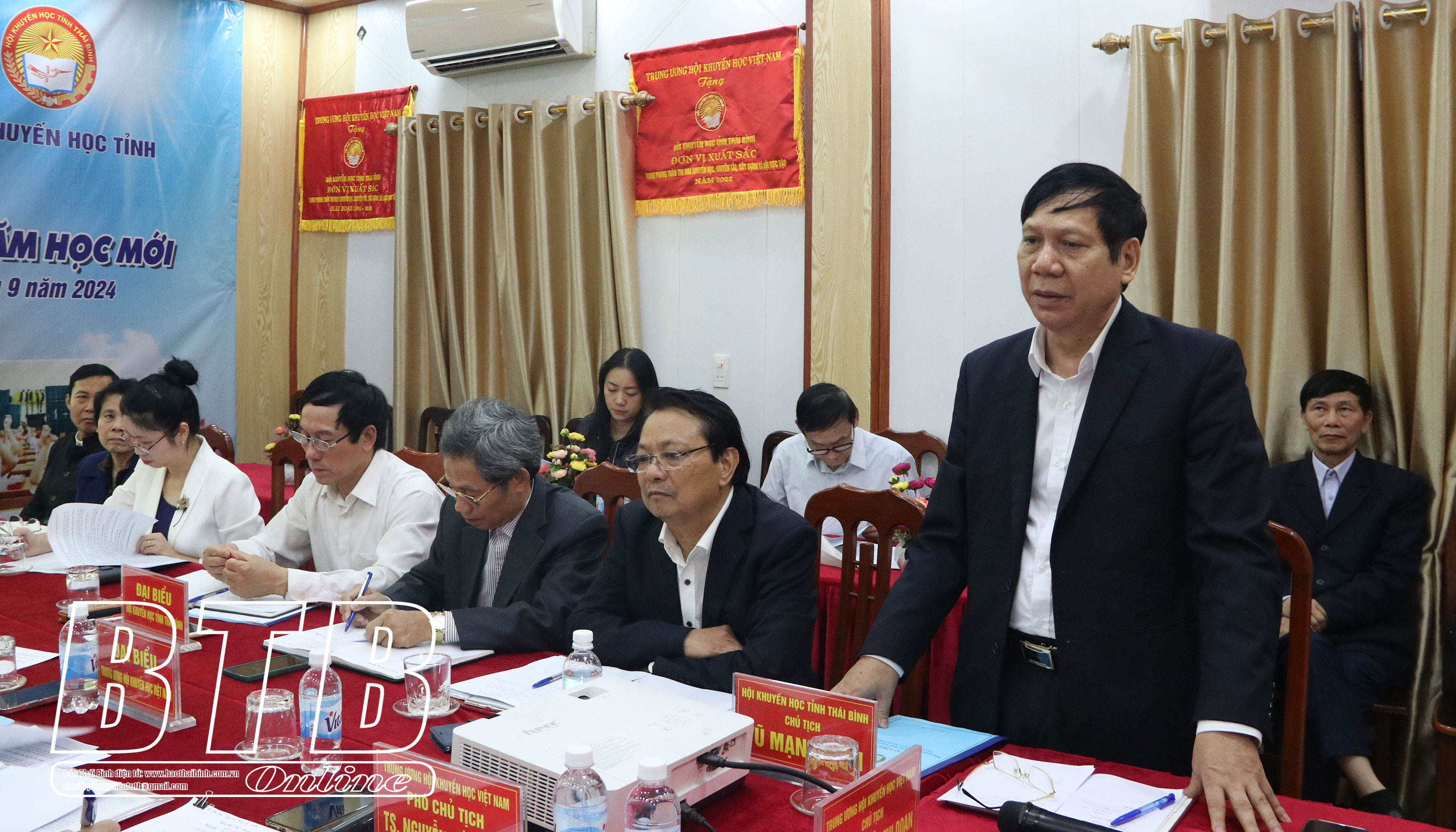 Lãnh đạo Hội Khuyến học tỉnh phát biểu tại buổi làm việc.
