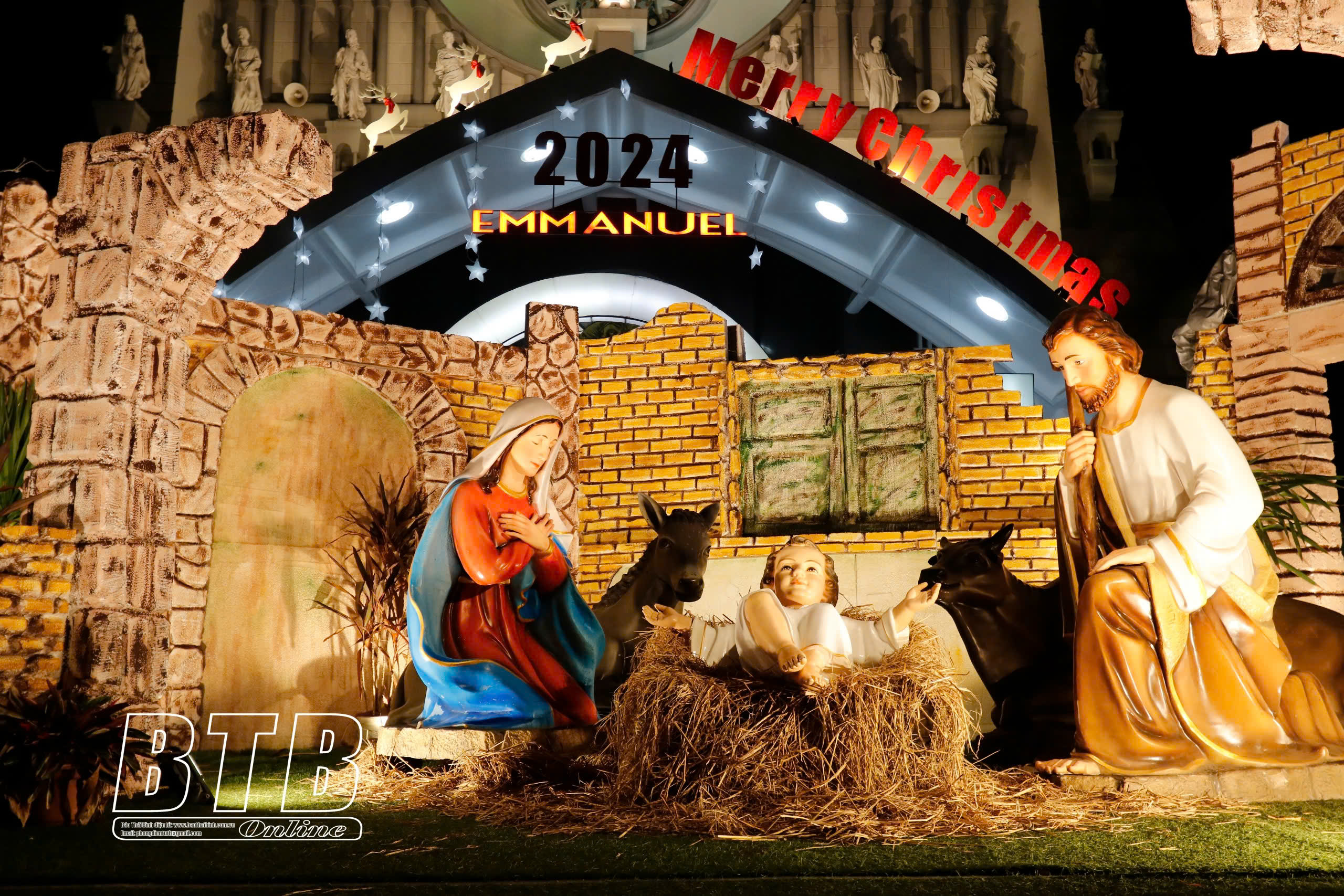 Khu vực bên ngoài phía trước cửa chính Nhà thờ chính tòa được trang trí bằng tiểu cảnh tái hiện thời điểm Chúa giáng sinh. Tiểu cảnh được thiết kế với kích thước gần như thật cùng nhiều chi tiết được làm cầu kỳ khiến người dân thích thú.