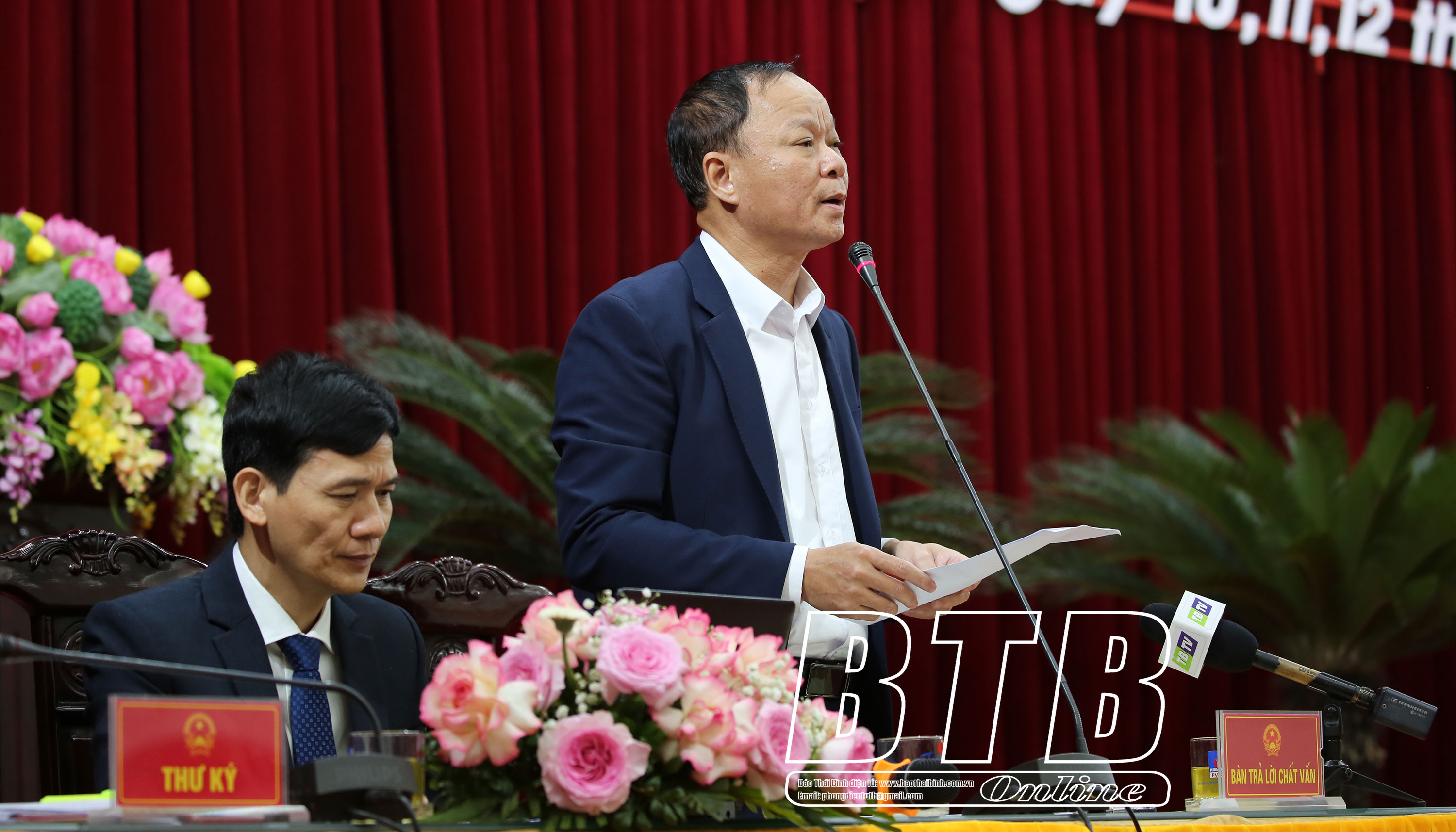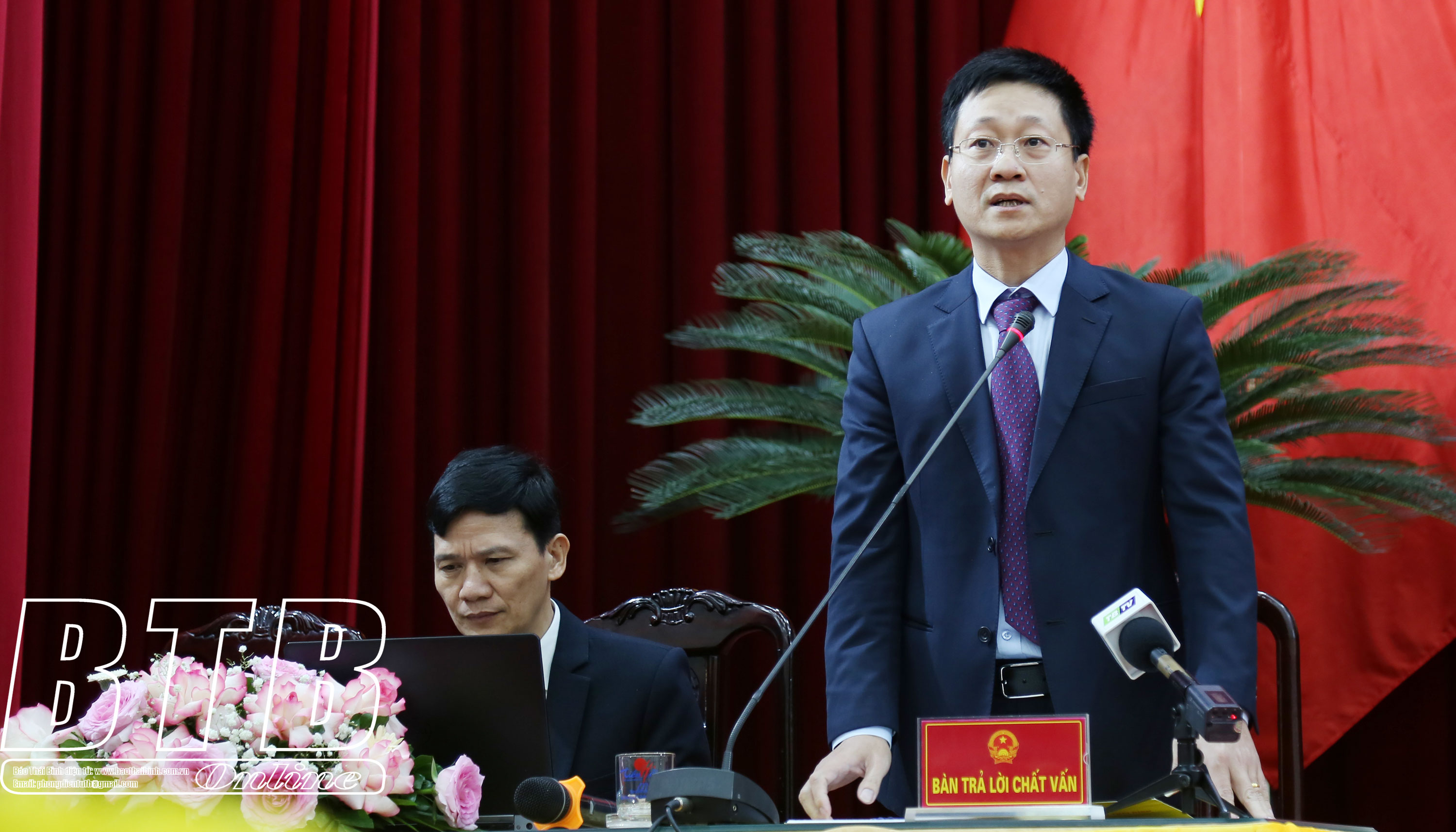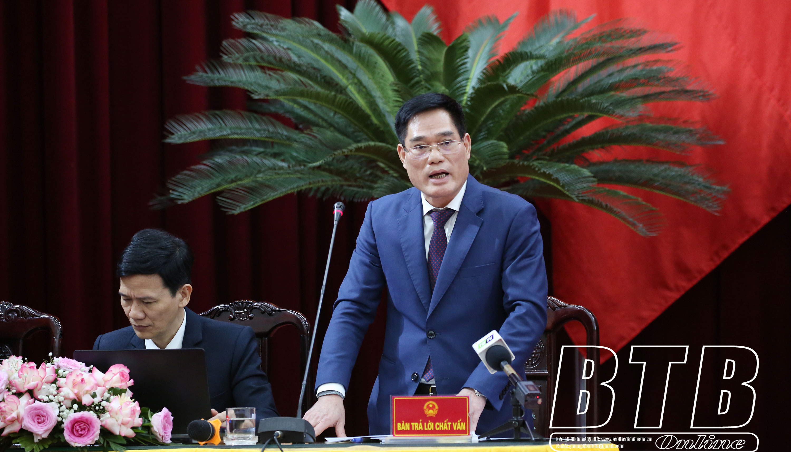 Đại biểu Lê Hồng Sơn, tổ Hưng Hà chất vấn đồng chí Giám đốc Sở Nông nghiệp và Phát triển nông thôn nội dung: Vừa qua, cơn bão số 3 đã gây thiệt hại rất nặng nề cho sản xuất nông nghiệp của tỉnh, đề nghị đồng chí cho biết Sở Nông nghiệp và Phát triển nông thôn đã tham mưu và chỉ đạo những biện pháp gì và kết quả trong việc khắc phục hậu quả sau bão, khôi phục sản xuất của ngành nông nghiệp trong tỉnh?