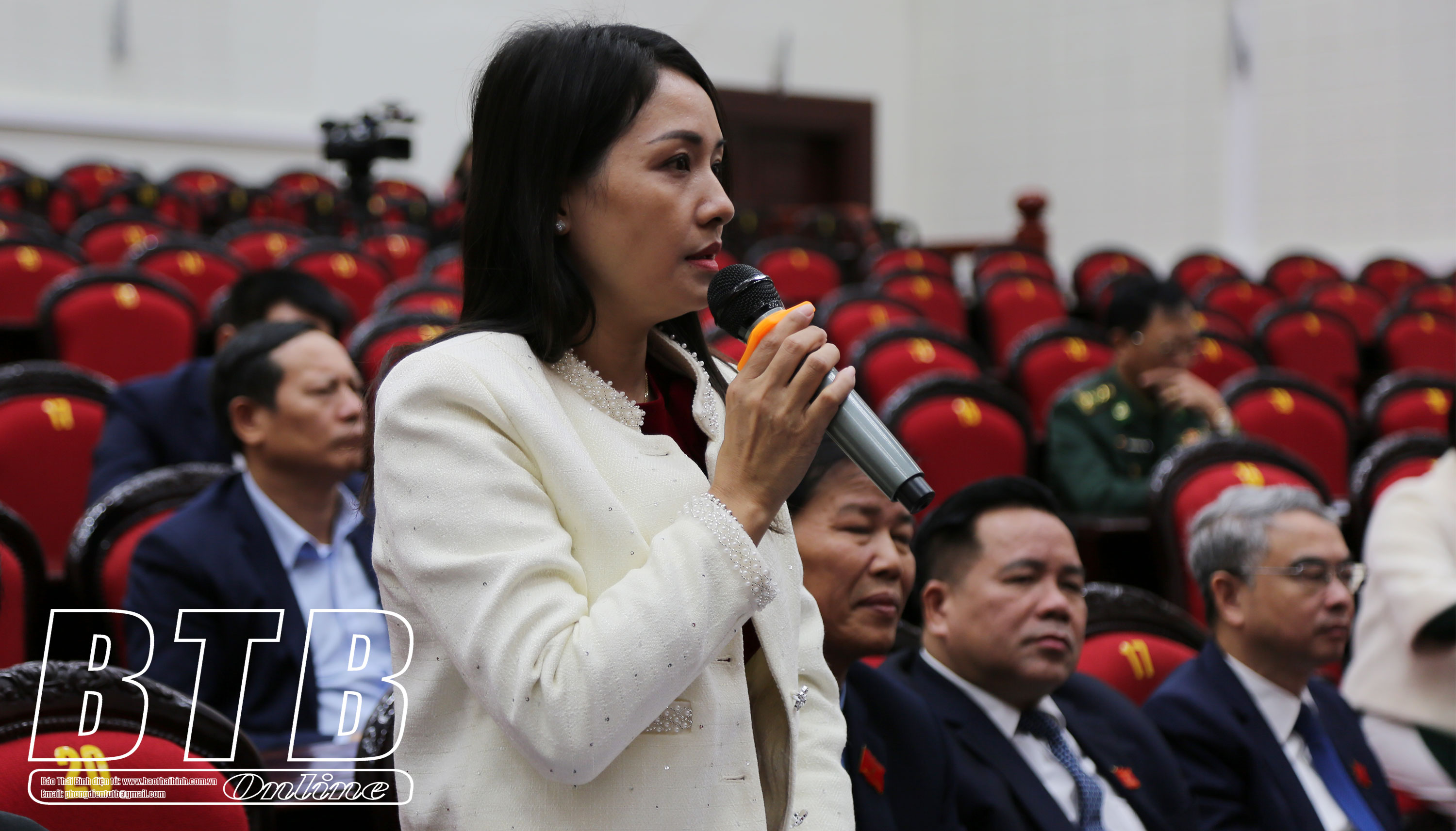 Mở đầu phiên chất vấn, đại biểu Đặng Thị Thu Hằng, tổ Kiến Xương chất vấn đồng chí Nguyễn Văn Trường, Giám đốc Sở Tài nguyên và Môi trường nội dung: Cử tri trong tỉnh có nhiều ý kiến phản ánh khó khăn trong quá trình thực hiện thủ tục cấp giấy chứng nhận quyền sử dụng đất; một số cơ sở sản xuất, kinh doanh xả thải xử lý không đạt quy chuẩn ra môi trường gây ô nhiễm. Với trách nhiệm là thủ trưởng ngành quản lý nhà nước về tài nguyên và môi trường ở tỉnh, đồng chí hãy nêu những giải pháp khắc phục tình trạng này?