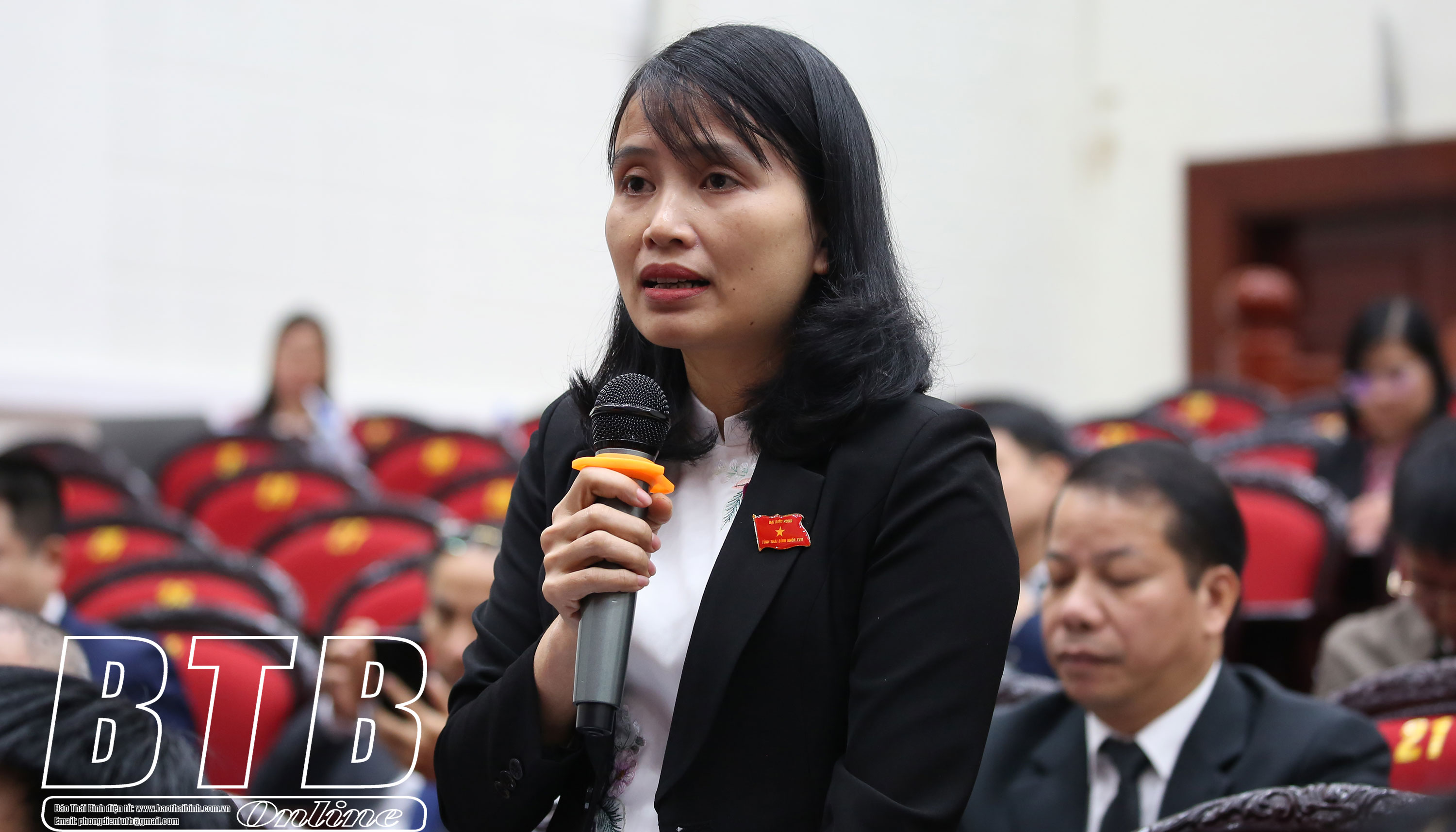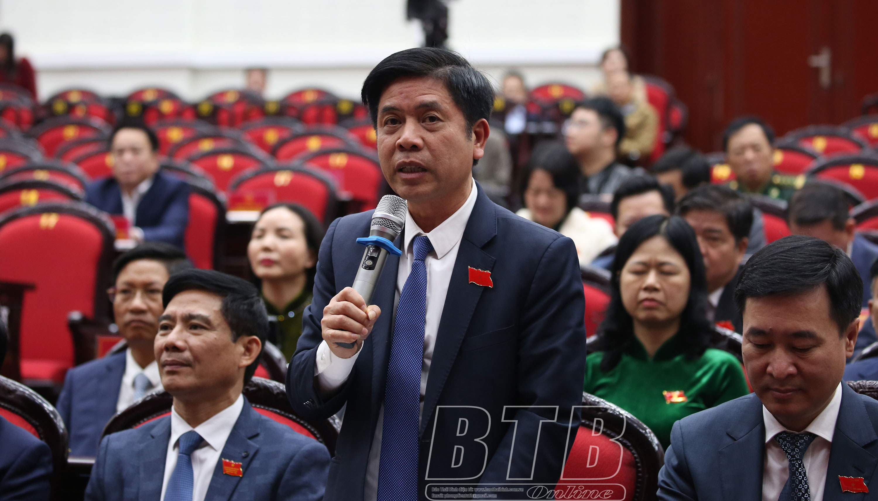 Đại biểu tổ Kiến Xương phát biểu chất vấn tại kỳ họp.