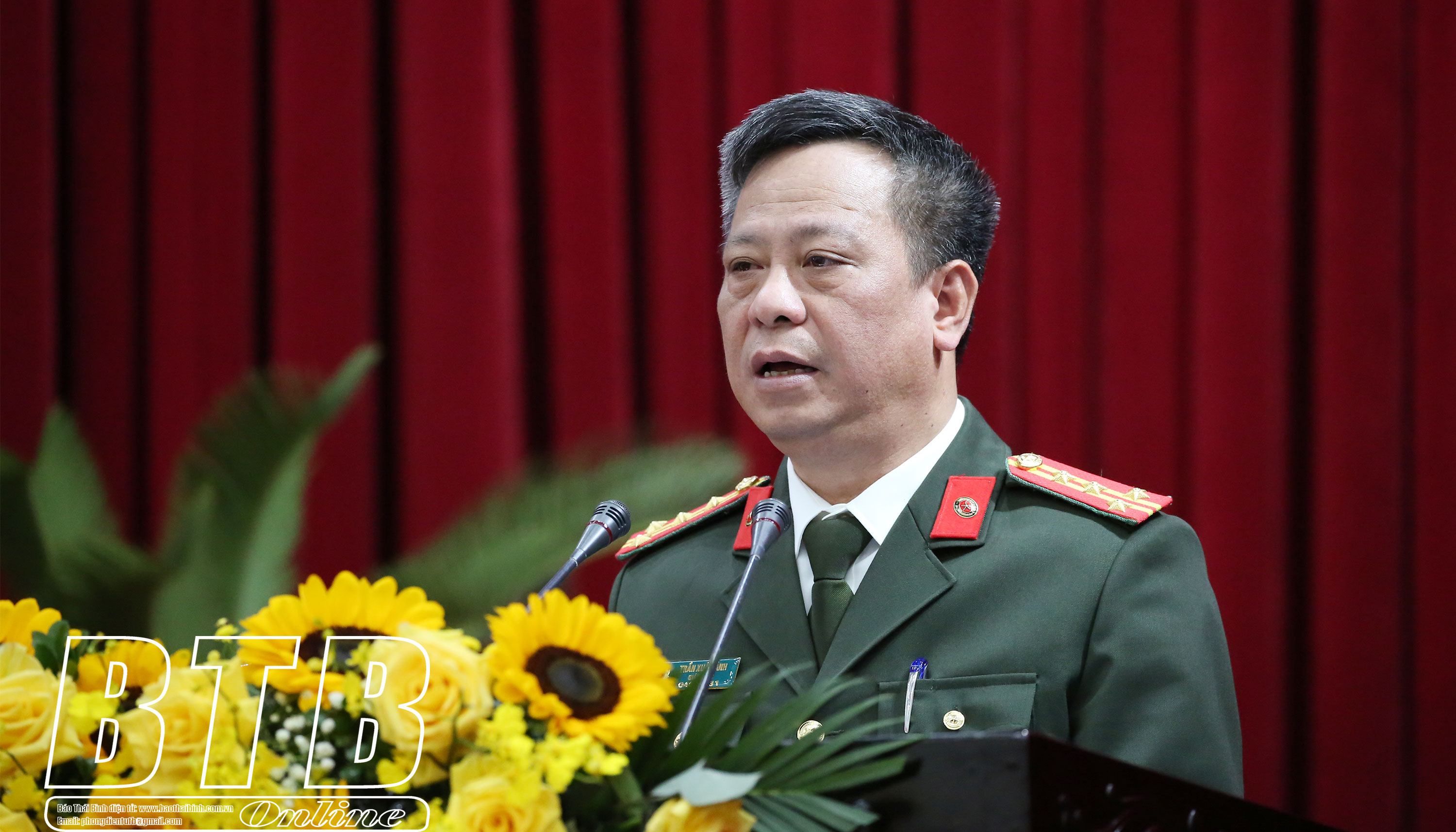 Đại tá Trần Xuân Ánh, Ủy viên Ban Thường vụ Tỉnh ủy, Giám đốc Công an tỉnh tham luận nội dung tình hình an ninh, trật tự trên địa bàn tỉnh và vai trò của lực lượng công an xã trong việc bảo vệ an ninh, trật tự ở địa phương; việc tiếp tục đẩy mạnh thực hiện đề án “Phát triển ứng dụng dữ liệu về dân cư, định danh và xác thực điện tử, phục vụ chuyển đổi số quốc gia giai đoạn 2022 - 2025, tầm nhìn đến năm 2030” trên địa bàn tỉnh Thái Bình.