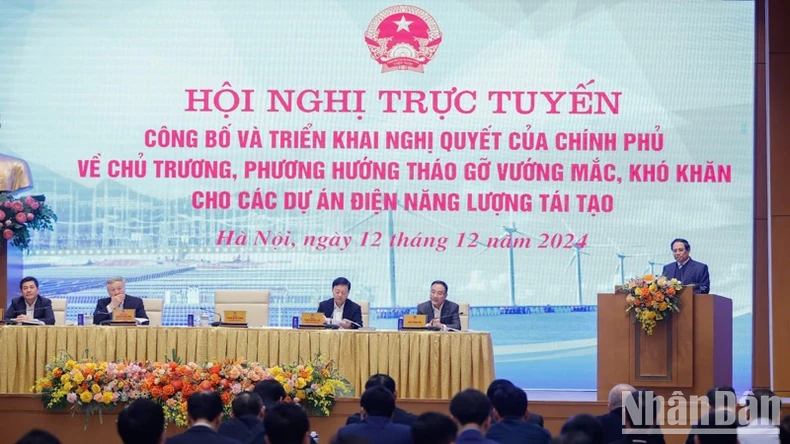 Vừa qua, Chính phủ, Thủ tướng Chính phủ đã quyết liệt chỉ đạo tháo gỡ những khó khăn, vướng mắc cho các dự án điện năng lượng tái tạo. Ngày 7/12/2024, Chính phủ đã họp và thống nhất ban hành Nghị quyết về chủ trương, phương hướng tháo gỡ khó khăn, vướng mắc cho các dự án điện năng lượng tái tạo.