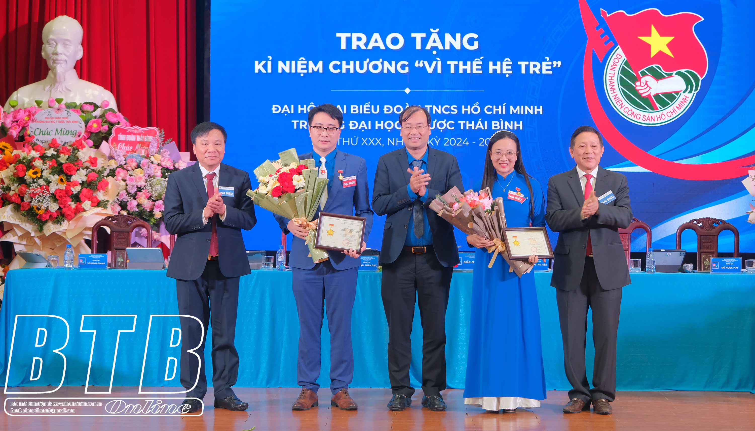 Lãnh đạo Tỉnh đoàn trao cờ thi đua cho Ban Chấp hành Đoàn Thanh niên Trường Đại học Y Dược Thái Bình.