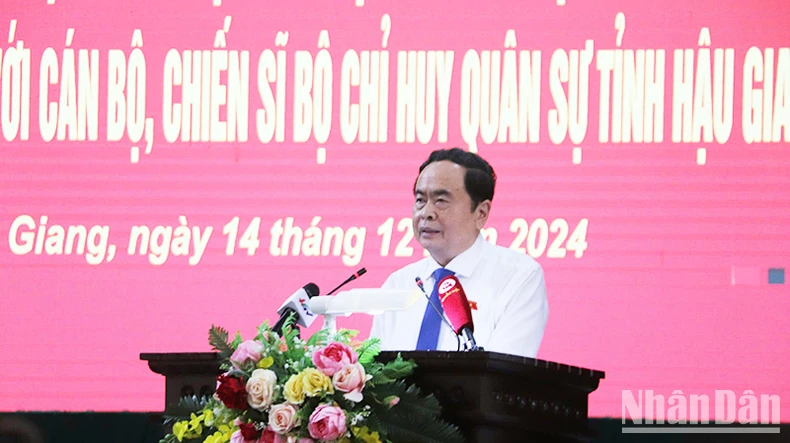 Cùng ngày, Chủ tịch Quốc hội Trần Thanh Mẫn đã đến thăm cán bộ, chiến sĩ Bộ Chỉ huy Quân sự tỉnh Hậu Giang. Chủ tịch Quốc hội khẳng định, trải qua chặng đường 80 năm xây dựng, chiến đấu và trưởng thành (22/12/1944-22/12/2024), Quân đội nhân dân Việt Nam nói chung và Bộ Chỉ huy Quân sự tỉnh Hậu Giang nói riêng đã xây đắp nên truyền thống quý báu, vẻ vang: “Trung với Đảng, hiếu với dân, sẵn sàng chiến đấu, hy sinh vì độc lập, tự do của Tổ quốc, vì chủ nghĩa xã hội. Nhiệm vụ nào cũng hoàn thành, khó khăn nào cũng vượt qua, kẻ thù nào cũng đánh thắng”.