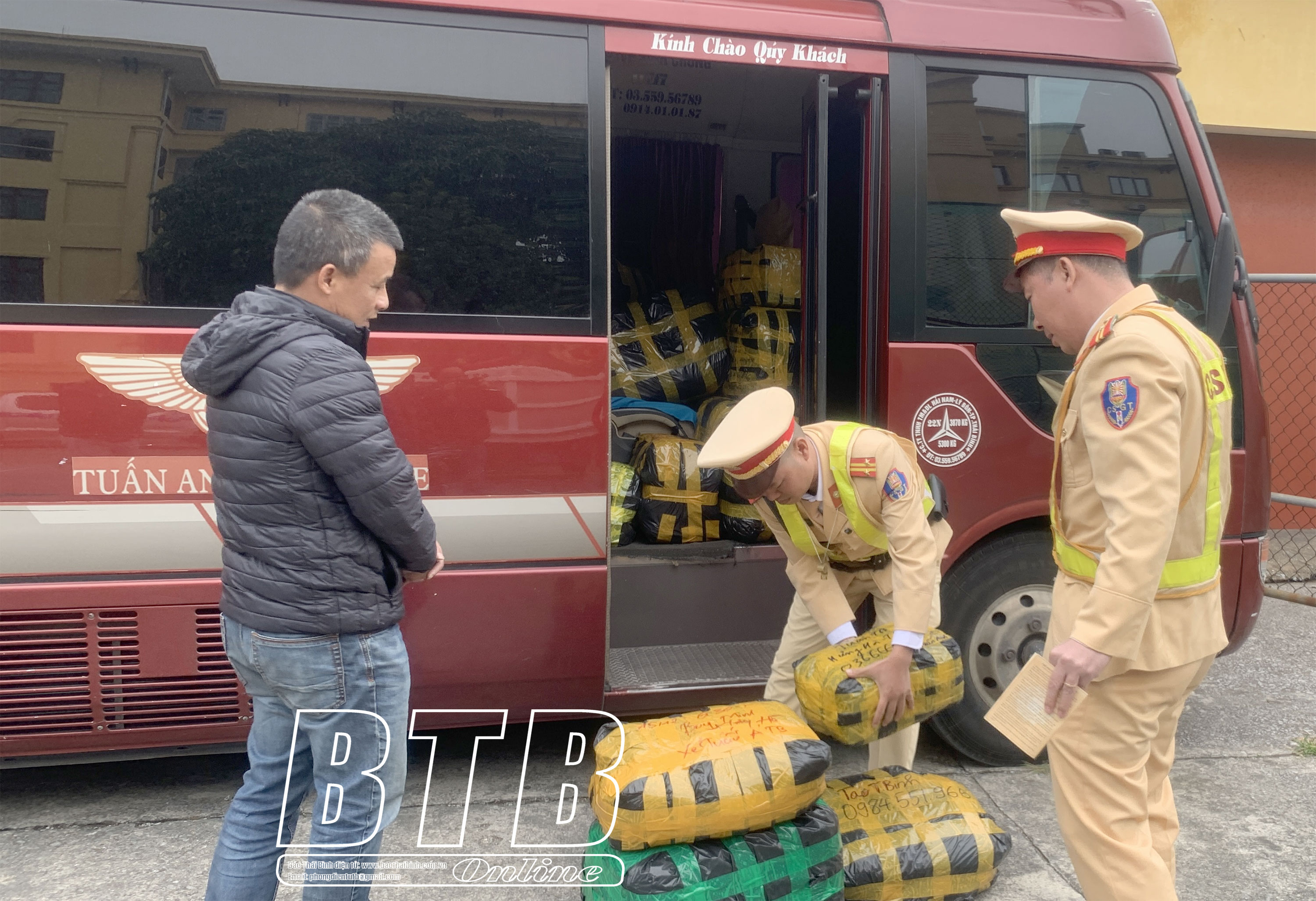 Chiều cùng ngày, tổ công tác của Trạm CSGT cầu Nghìn (Phòng CSGT) đã kiểm tra, phát hiện xe ô tô khách loại 22 chỗ ngồi, biển kiểm soát 17F-000.29, do Nguyễn Văn Chiến, sinh năm 1970, trú tại xã Vũ Lạc (thành phố Thái Bình) điều, trên xe vận chuyển 129 bịch chứa đựng hàng hóa là quần áo các loại, có trọng lượng 2.204kg.