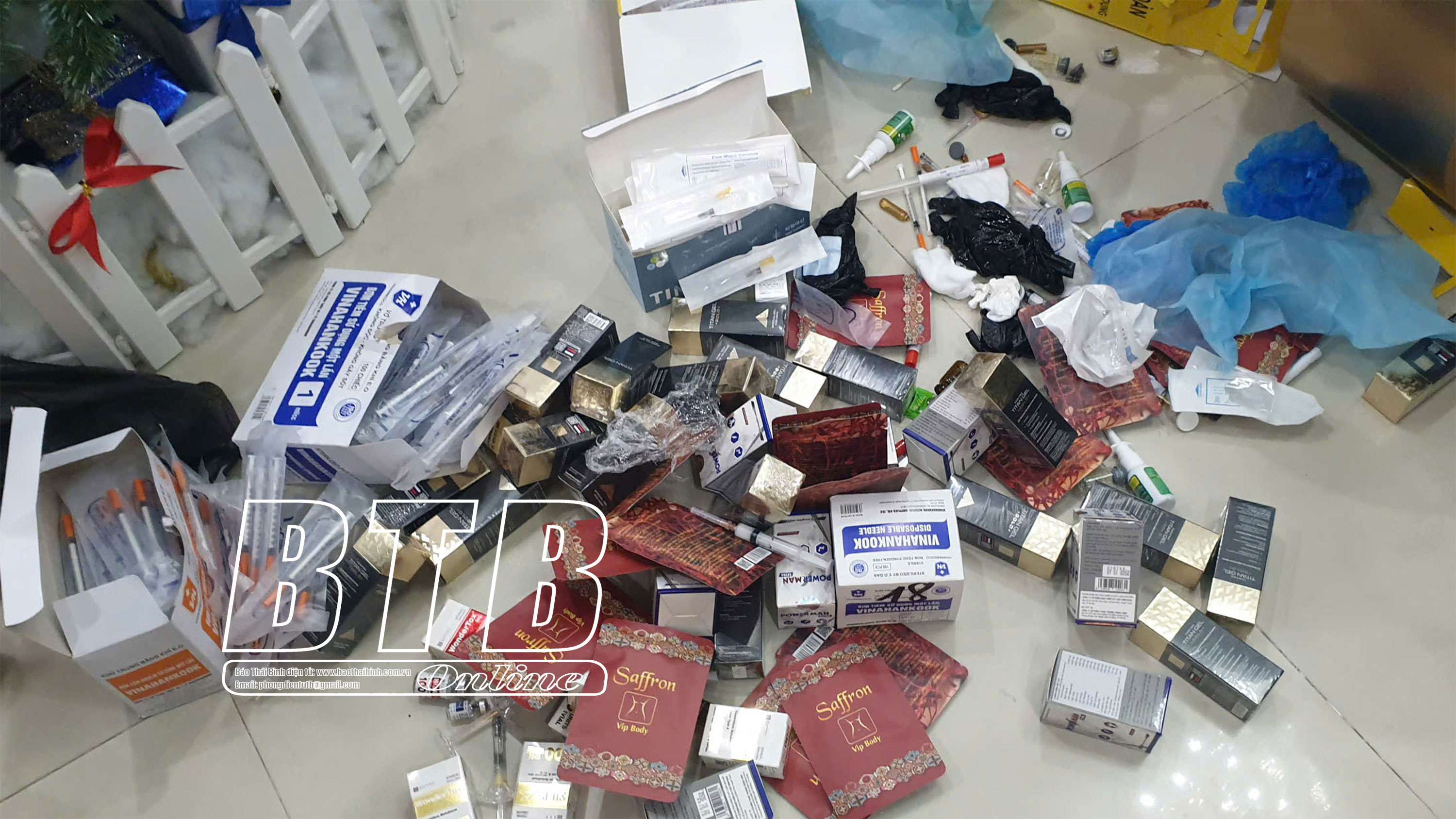 Theo giấy chứng nhận đăng ký hộ kinh doanh do cơ sở cung cấp, ngành nghề kinh doanh là cắt tóc, làm đầu, gội đầu (massage mặt); tuy nhiên tại thời điểm kiểm tra có 2 khách hàng đến cơ sở điều trị viêm mũi, viêm xoang. Cụ thể, một trường hợp 16 tuổi đến điều trị với số tiền 30 triệu đồng, đã được cơ sở cho sử dụng laser vùng xoang, 1 lọ thuốc bột có hướng dẫn sử dụng hít 2 lần/ngày; trường hợp thứ hai sinh năm 1989 đến cơ sở điều trị viêm xoang với giá dịch vụ 20 triệu đồng và được cơ sở cho sử dụng 1 lọ thuốc bột màu vàng được hướng dẫn hít 2 lần/ngày. Bên cạnh đó, có 1 khách hàng đến cơ sở chăm sóc da bằng phương pháp bắn laser. Đoàn cũng đã phát hiện 1 túi bóng đen đựng nhiều bơm kim tiêm đã qua sử dụng, đầu ampu và bông băng có thấm dịch của khách hàng, 6 lọ thuốc Wonder Tox Inj (Clostridium Botulinnum Toxin Type A).