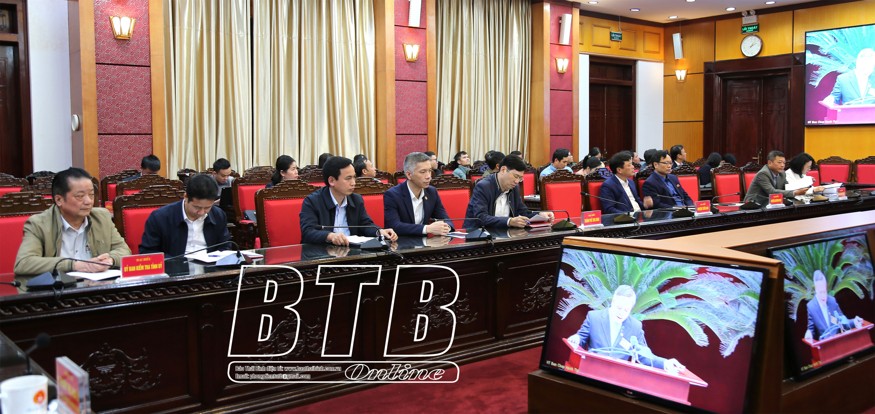 Các đồng chí lãnh đạo Ủy ban Kiểm tra Tỉnh ủy, huyện ủy, thành ủy, ủy ban kiểm tra các huyện, thành phố dự hội nghị tại điểm cầu Thái Bình.