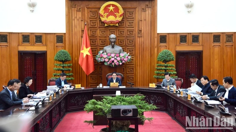 Thủ tướng Phạm Minh Chính chủ trì phiên họp thứ năm Ban Chỉ đạo của Chính phủ tổng kết việc thực hiện Nghị quyết 18-NQ/TW. (Ảnh: TRẦN HẢI).