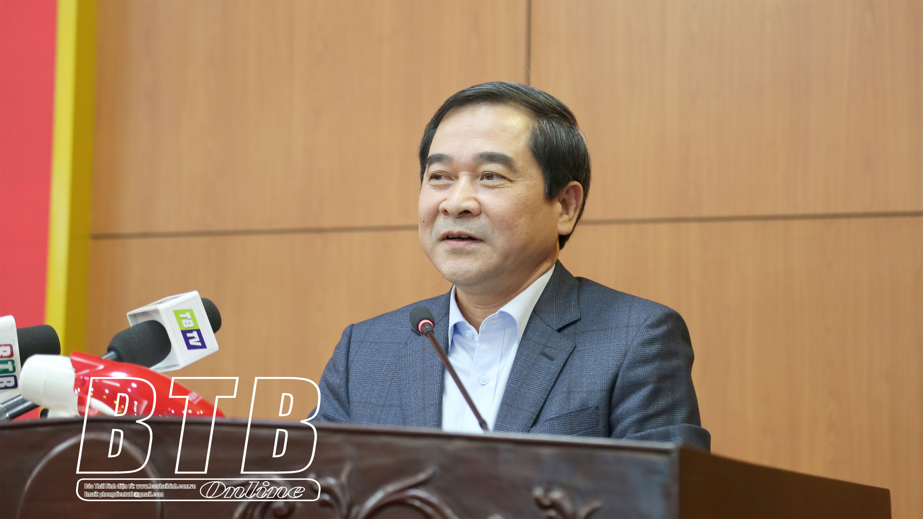 Đồng chí Nguyễn Tiến Thành, Phó Bí thư thường trực Tỉnh ủy, Chủ tịch HĐND tỉnh phát biểu tại hội nghị.