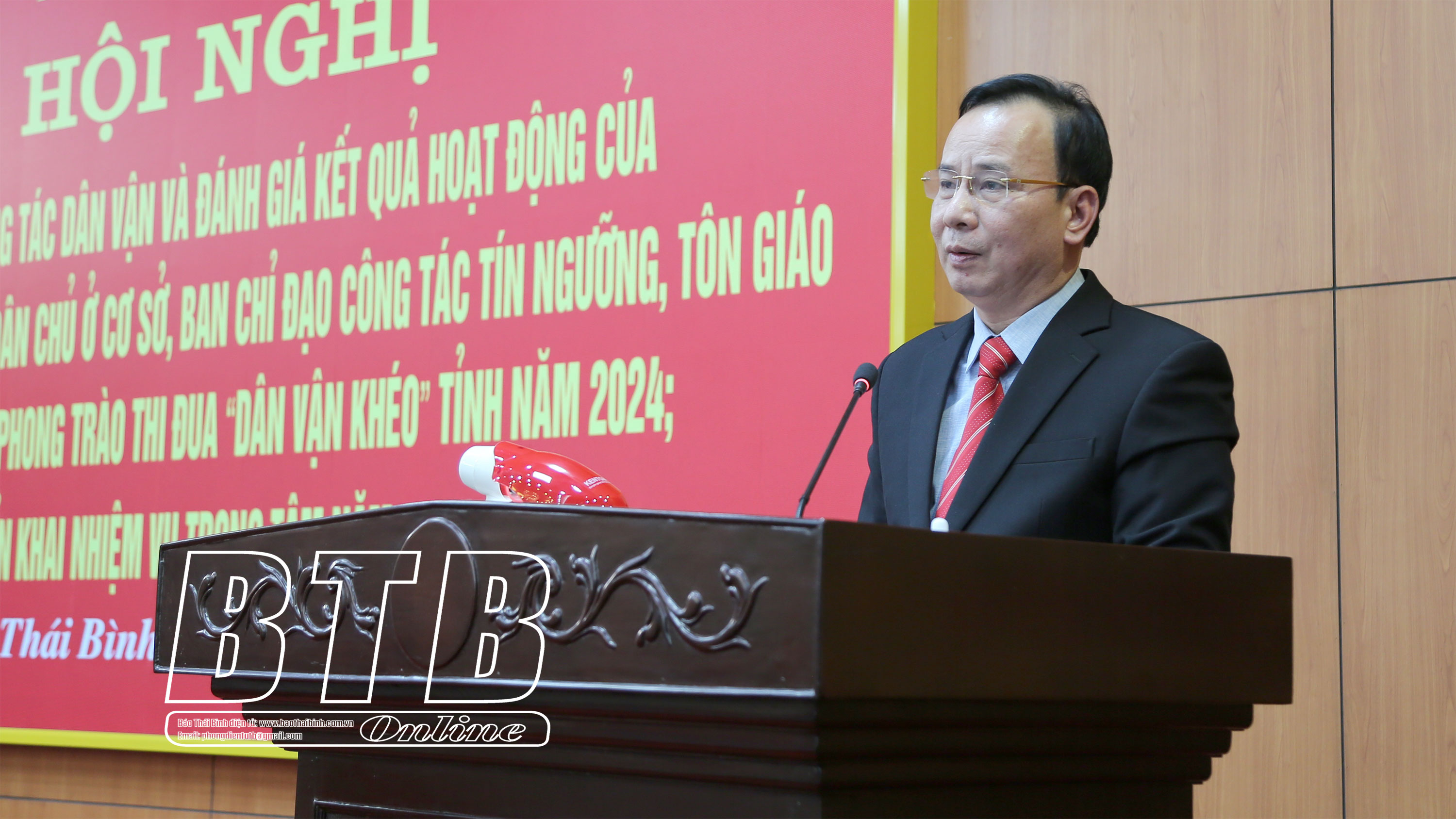 Phát biểu tại hội nghị, cùng với việc chúc mừng, biểu dương các tập thể, cá nhân, mô hình điển hình tiên tiến trong phong trào thi đua “Dân vận khéo” năm 2024, đồng chí Nguyễn Tiến Thành, Phó Bí thư thường trực Tỉnh ủy, Chủ tịch HĐND tỉnh cũng thẳng thắn chỉ ra những tồn tại, hạn chế trong công tác dân vận cần tập trung khắc phục trong thời gian tới. Với mục tiêu ổn định chính trị, xã hội, nâng cao đời sống của nhân dân, đồng chí yêu cầu cấp ủy và hệ thống dân vận các cấp quán triệt đầy đủ các chủ trương, quan điểm của Đảng, Nhà nước và của tỉnh đến với người dân một cách nhanh nhất, vận động tạo sự đồng thuận cao để tổ chức thực hiện; tiếp tục đẩy mạnh các phong trào thi đua yêu nước; chú trọng đổi mới, nâng cao hiệu quả hoạt động của MTTQ và các đoàn thể nhất là công tác tuyên truyền, vận động bảo đảm sát, đúng, đi vào cơ sở; tăng cường công tác kiểm tra, giám sát việc thực hiện các văn bản của cấp trên và cấp ủy cùng cấp về công tác dân vận; tập trung đối thoại, trên cơ sở đó giải quyết dứt điểm các vấn đề còn vướng mắc ở cơ sở.