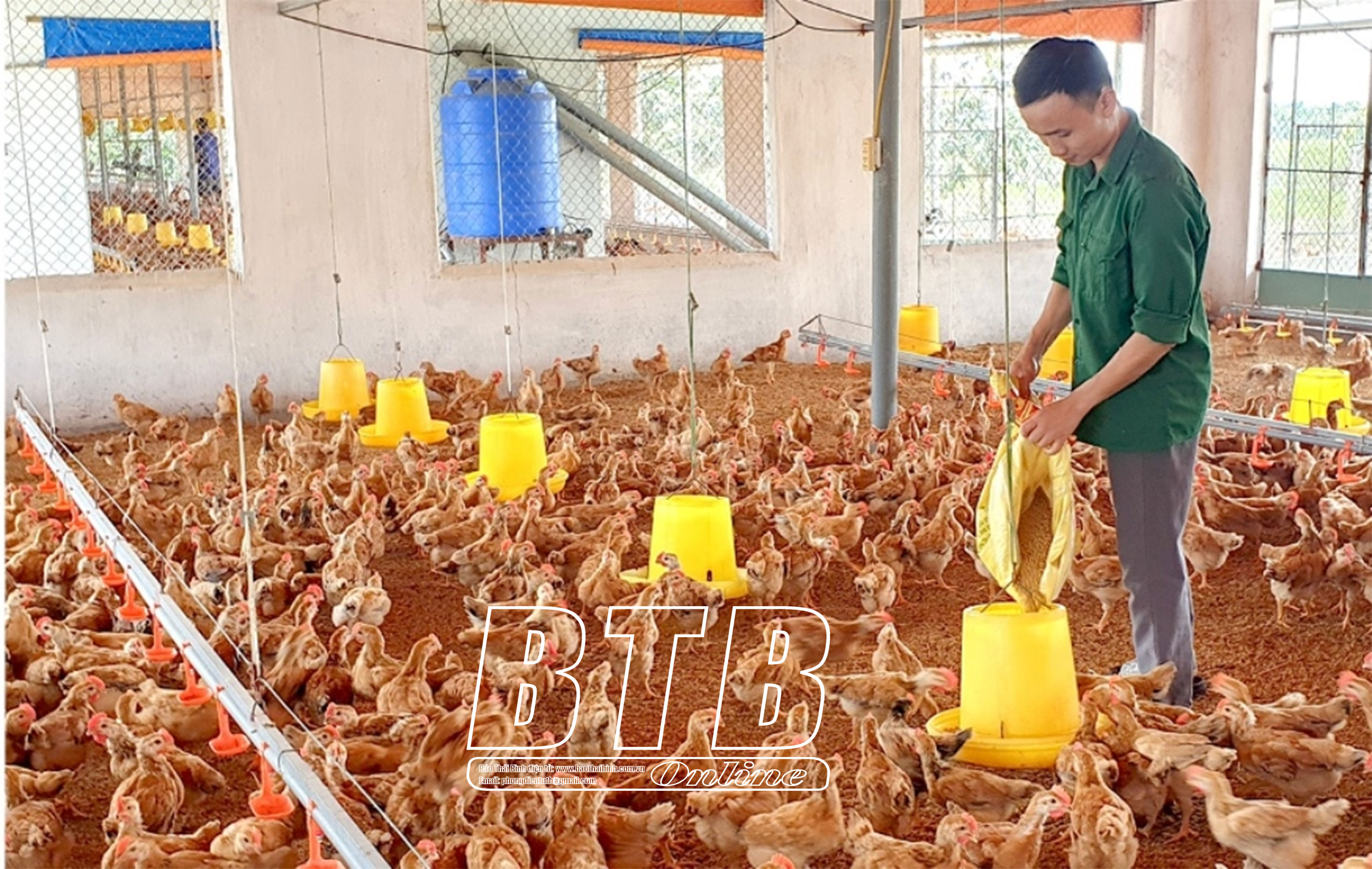 Nuôi gà thương phẩm của hộ chăn nuôi xã An Vinh (Quỳnh Phụ).