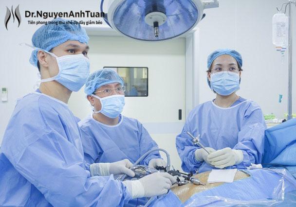 PGS.TS.BS Nguyễn Anh Tuấn cùng cộng sự thực hiện một ca phẫu thuật nội soi thu nhỏ dạ dày giảm béo.