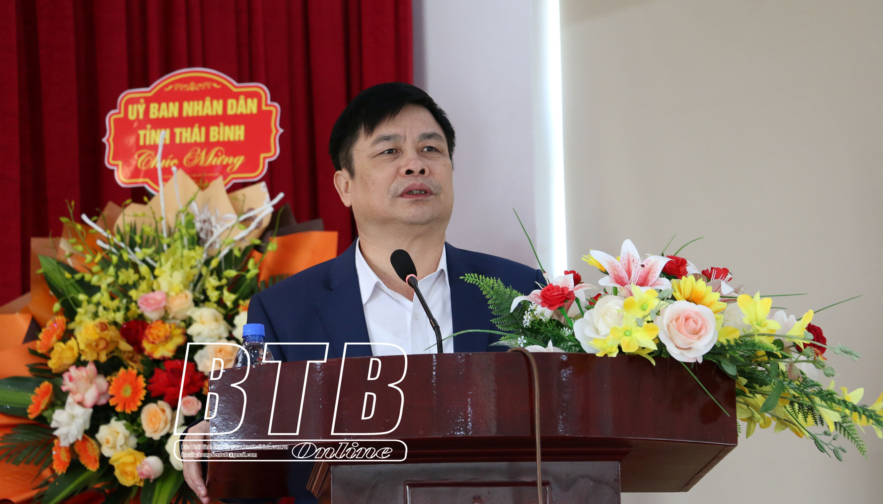 Đồng chí Phạm Văn Nghiêm, Tỉnh ủy viên, Phó Chủ tịch UBND tỉnh tặng hoa chúc mừng.