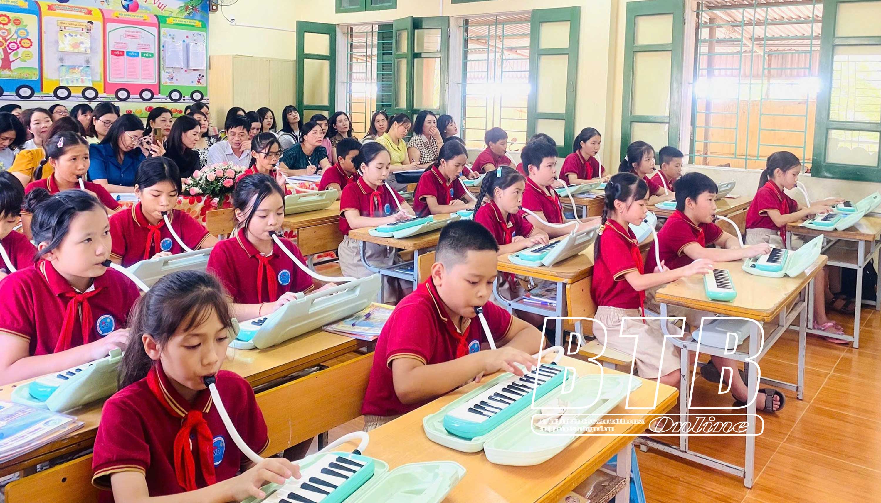 Tiết học Âm nhạc của các em học sinh Trường Tiểu học Vũ Đông (thành phố Thái Bình).