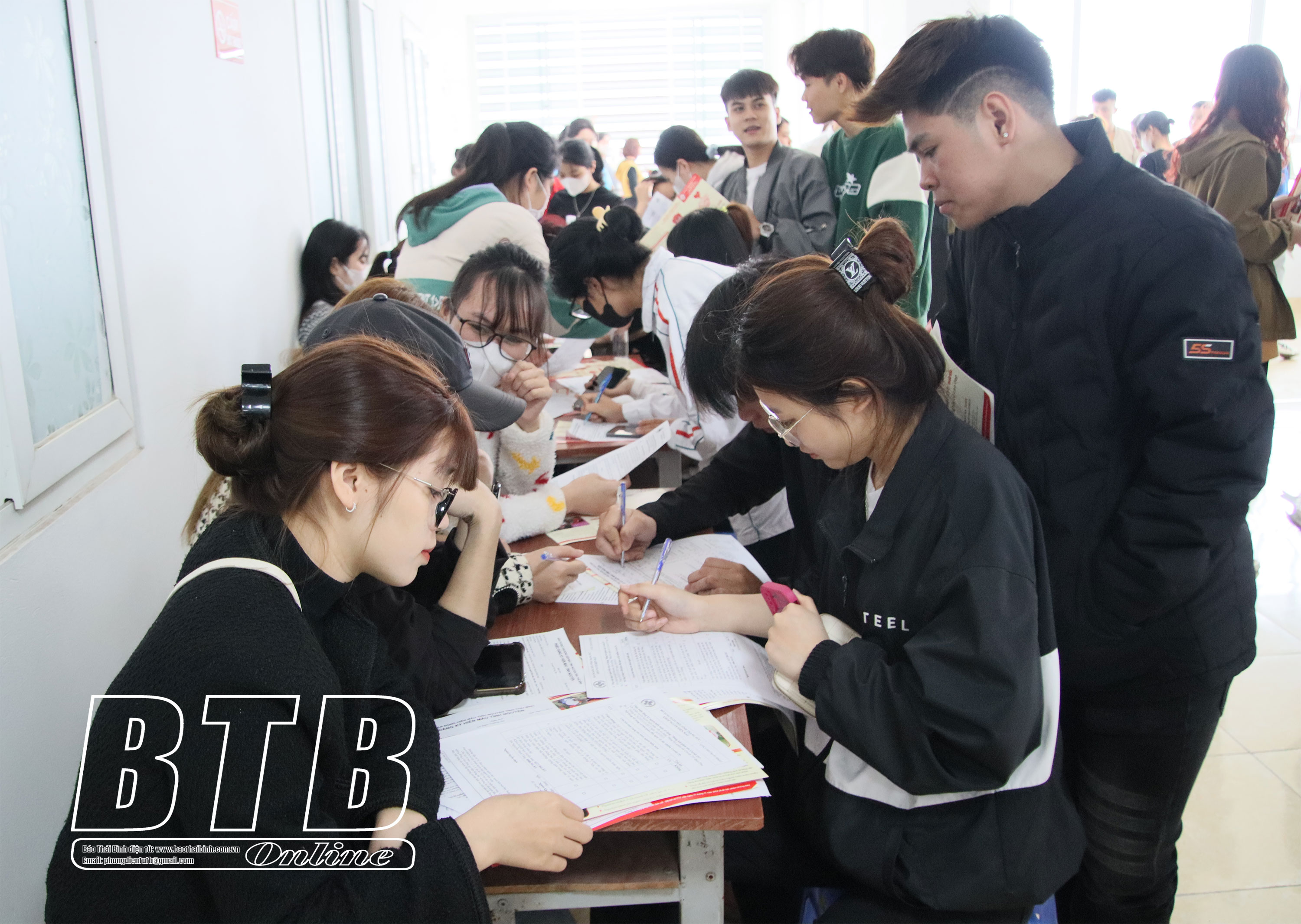 Sinh viên Trường Cao đẳng Y tế Thái Bình đăng ký tham gia hiến máu tình nguyện.