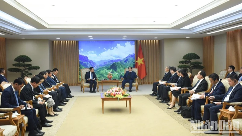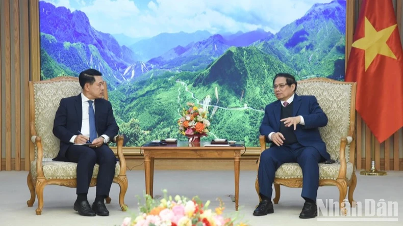 Thủ tướng Phạm Minh Chính tiếp Phó Thủ tướng Chính phủ Lào Saleumxay Kommasith. (Ảnh: TRẦN HẢI).