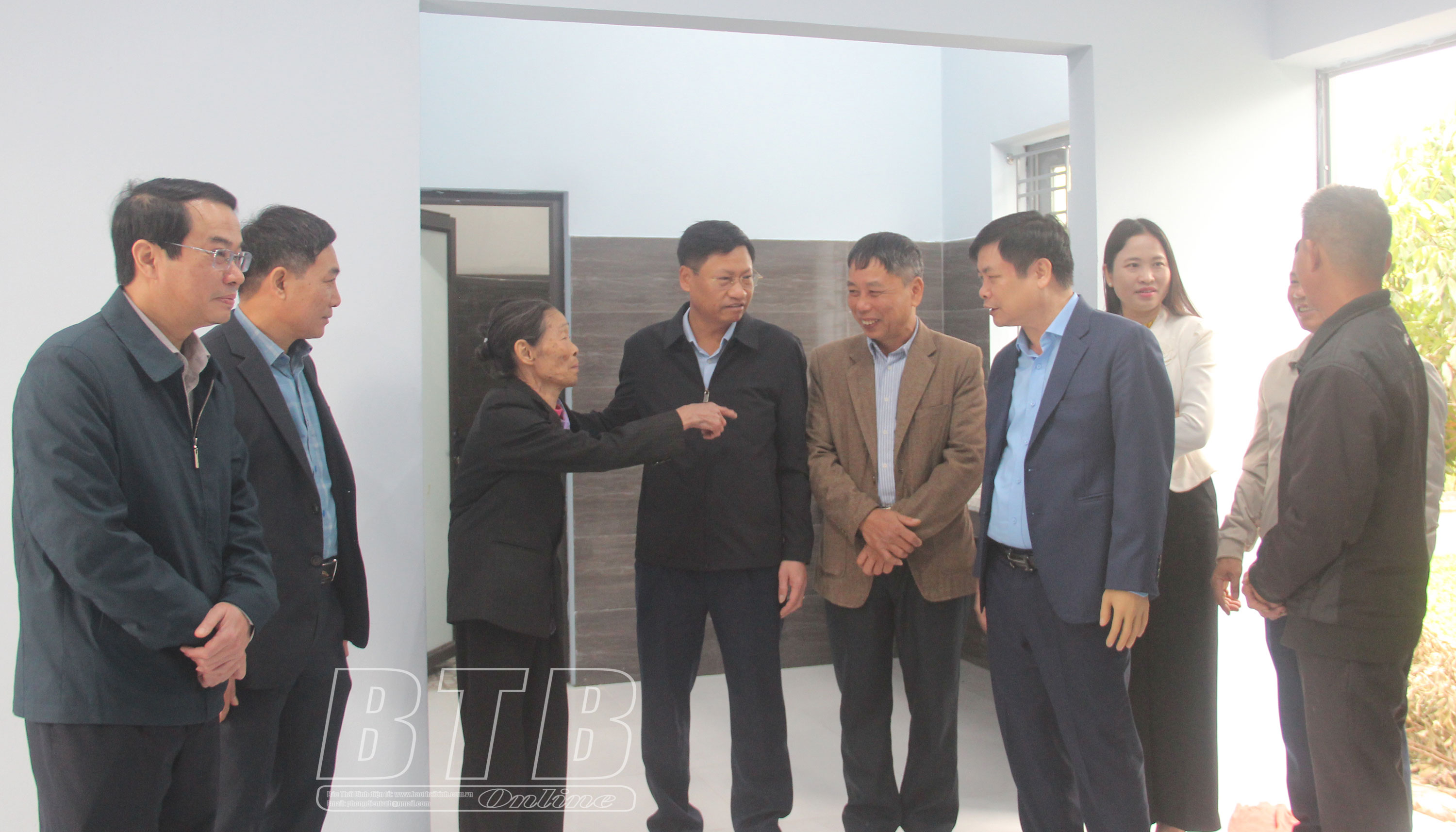 Các đồng chí lãnh đạo tỉnh, thành phố Thái Bình thăm ngôi nhà mới của bà Bùi Thị Sửu.