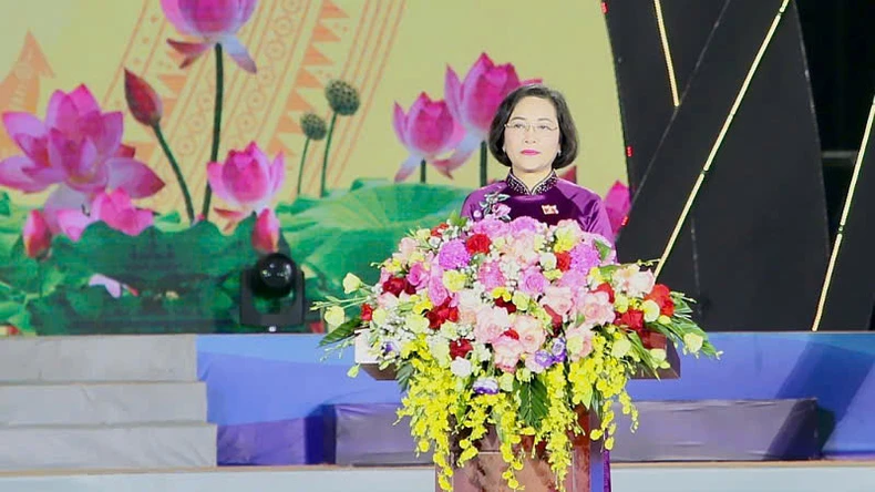 Phó Chủ tịch Quốc hội Nguyễn Thị Thanh phát biểu tại buổi lễ.
