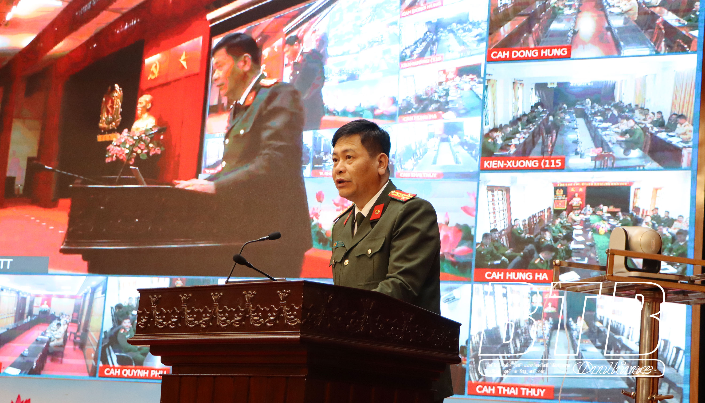 Lãnh đạo Công an tỉnh phát biểu tại hội nghị.
