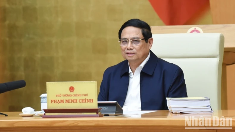Thủ tướng Phạm Minh Chính phát biểu ý kiến chỉ đạo Phiên họp. (Ảnh: TRẦN HẢI).