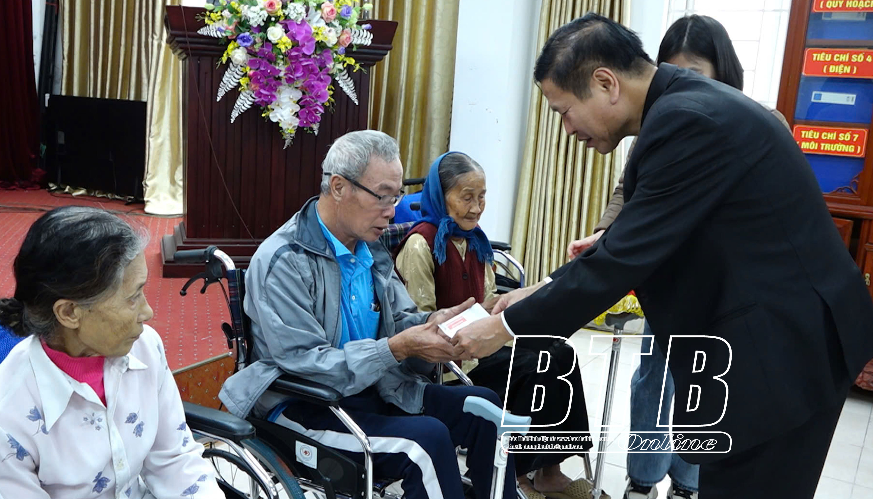 30 chiếc xe lăn, 40 nạng chống chân với tổng trị giá 70 triệu đồng của Công ty Cổ phần Tư vấn phát triển và đầu tư Bảo Phong trao cho người khuyết tật có hoàn cảnh khó khăn. Cùng với trao xe, nạng chống chân, đơn vị tài trợ trao một số phần quà cho người khuyết tật.