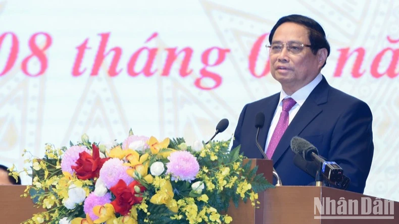 Thủ tướng Phạm Minh Chính phát biểu ý kiến tại Hội nghị. (Ảnh: TRẦN HẢI).