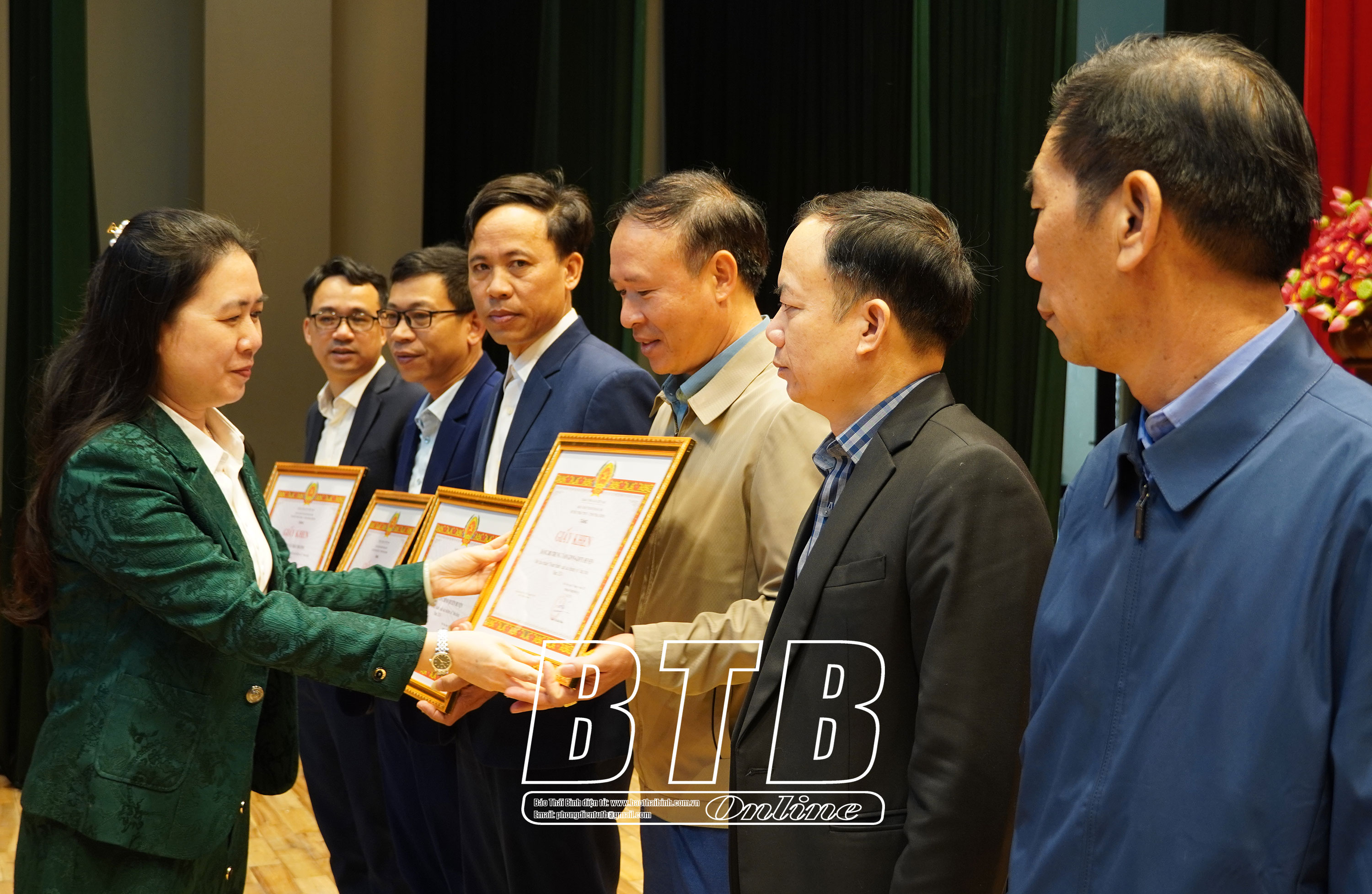 Lãnh đạo huyện Thái Thụy khen thưởng các tập thể “Hoàn thành xuất sắc nhiệm vụ tiêu biểu” năm 2024.