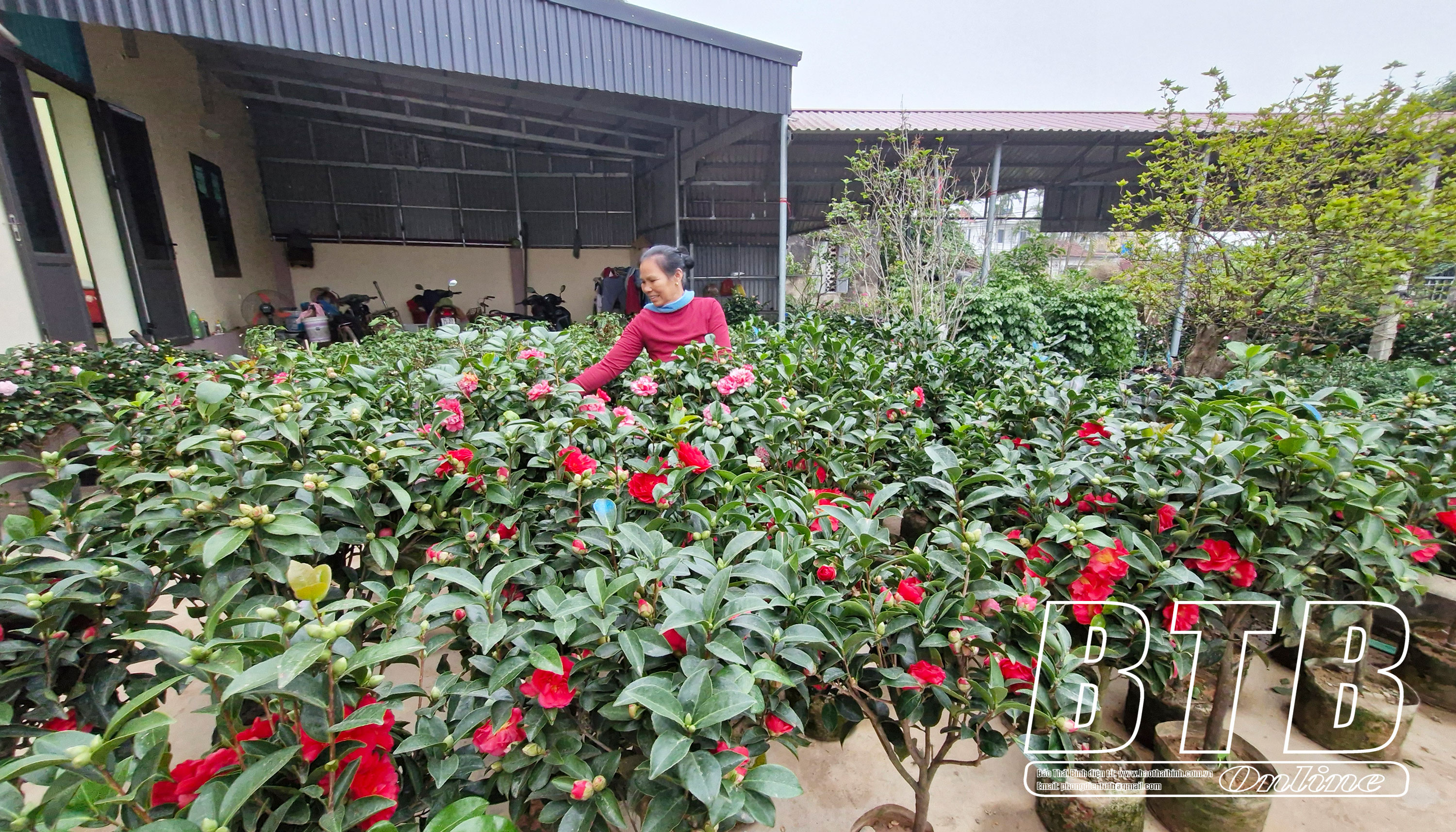 Nhà vườn Phong Ngọc, thôn Quán Thôn, xã Hồng Việt với đủ các loại cây hoa phục vụ người dân chơi tết.