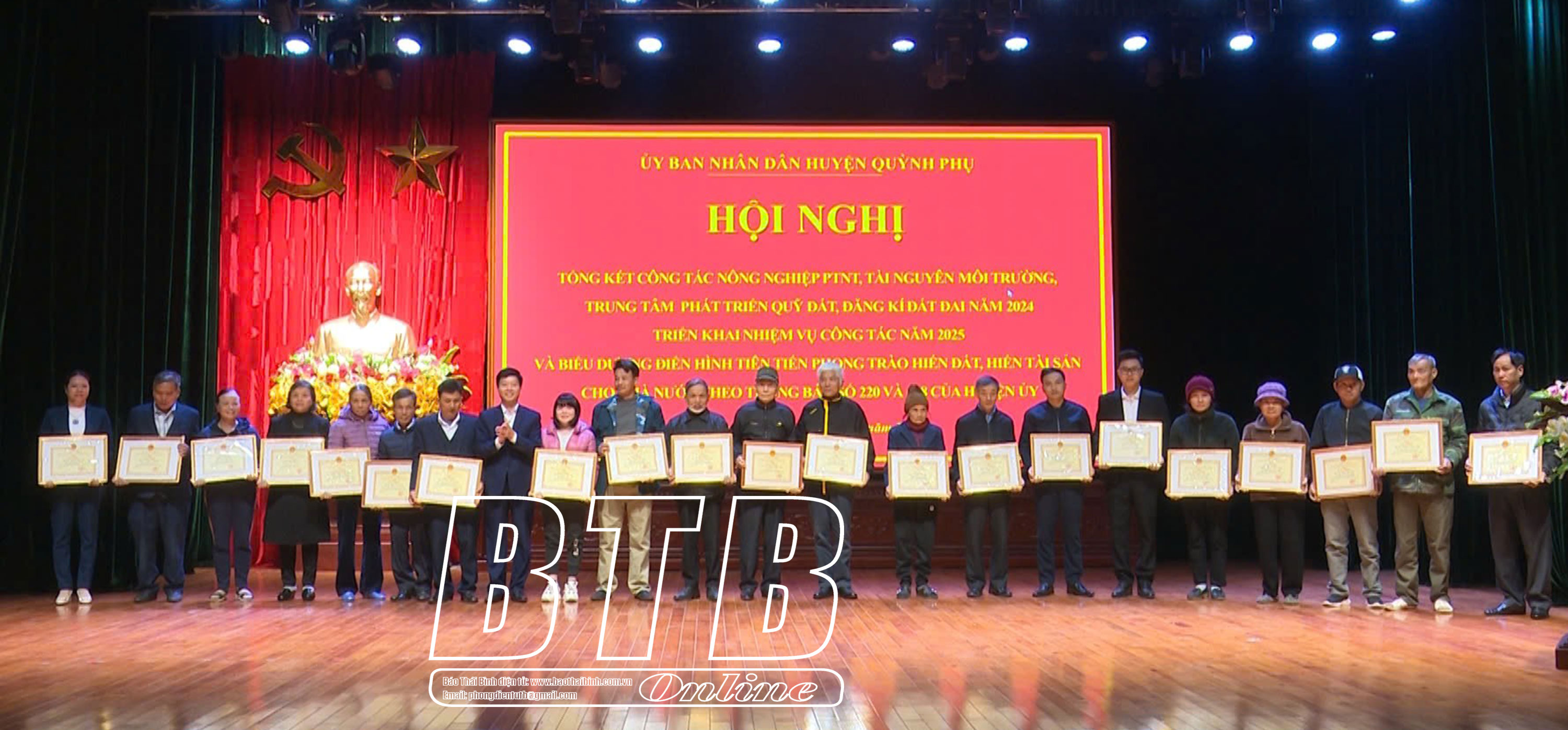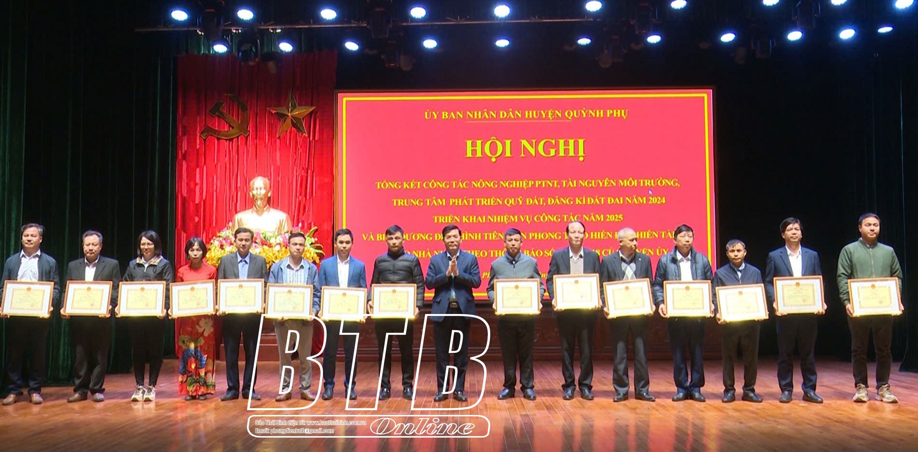 Lãnh đạo huyện Quỳnh Phụ khen thưởng các tập thể, cá nhân hoàn thành tốt công tác tài nguyên môi trường, phát triển quỹ đất năm 2024.