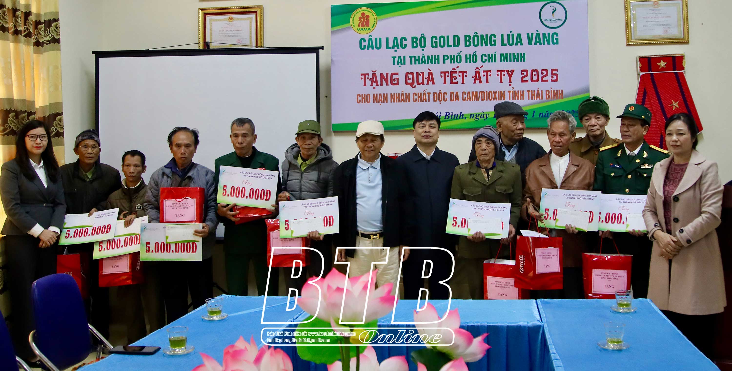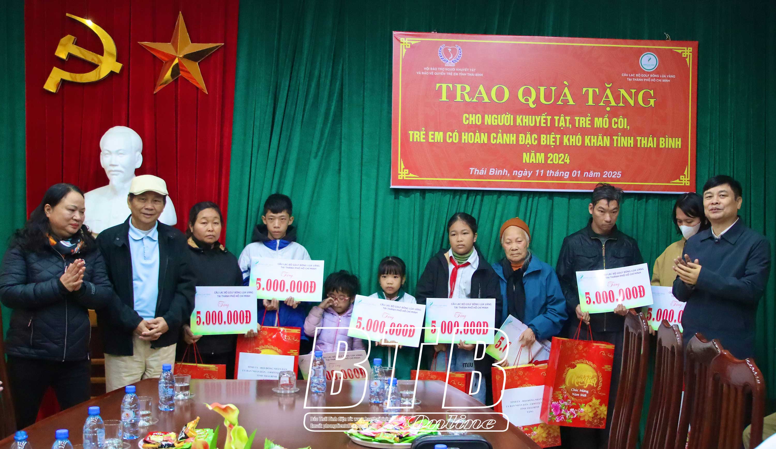 Câu lạc bộ Golf Bông Lúa Vàng tại Thành phố Hồ Chí Minh hỗ trợ 200 triệu đồng cho 32 gia đình người khuyết tật, trẻ mồ côi, trẻ em có hoàn cảnh đặc biệt khó khăn, nạn nhân chất độc da cam của tỉnh Thái Bình.