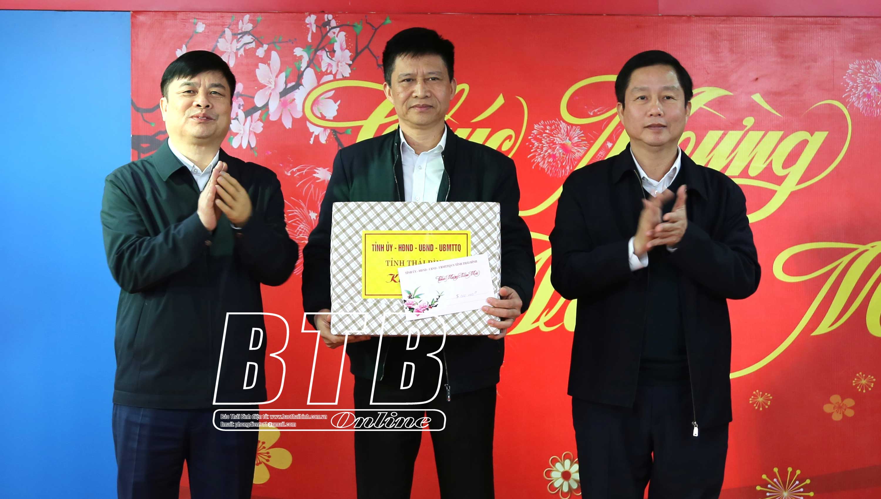 Các đồng chí lãnh đạo UBND tỉnh, Ủy ban MTTQ tỉnh tặng quà tết cho Trung tâm Chăm sóc và Phục hồi chức năng cho người tâm thần tỉnh Thái Bình.