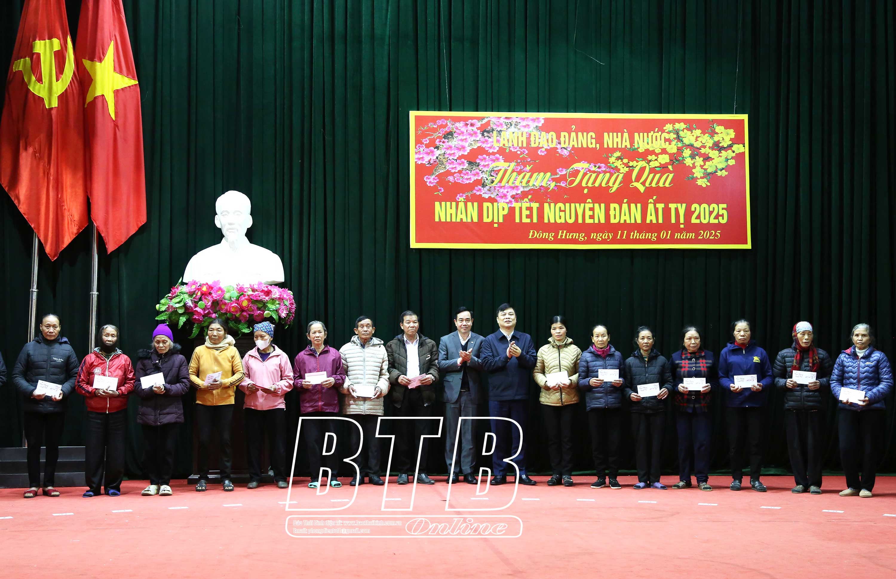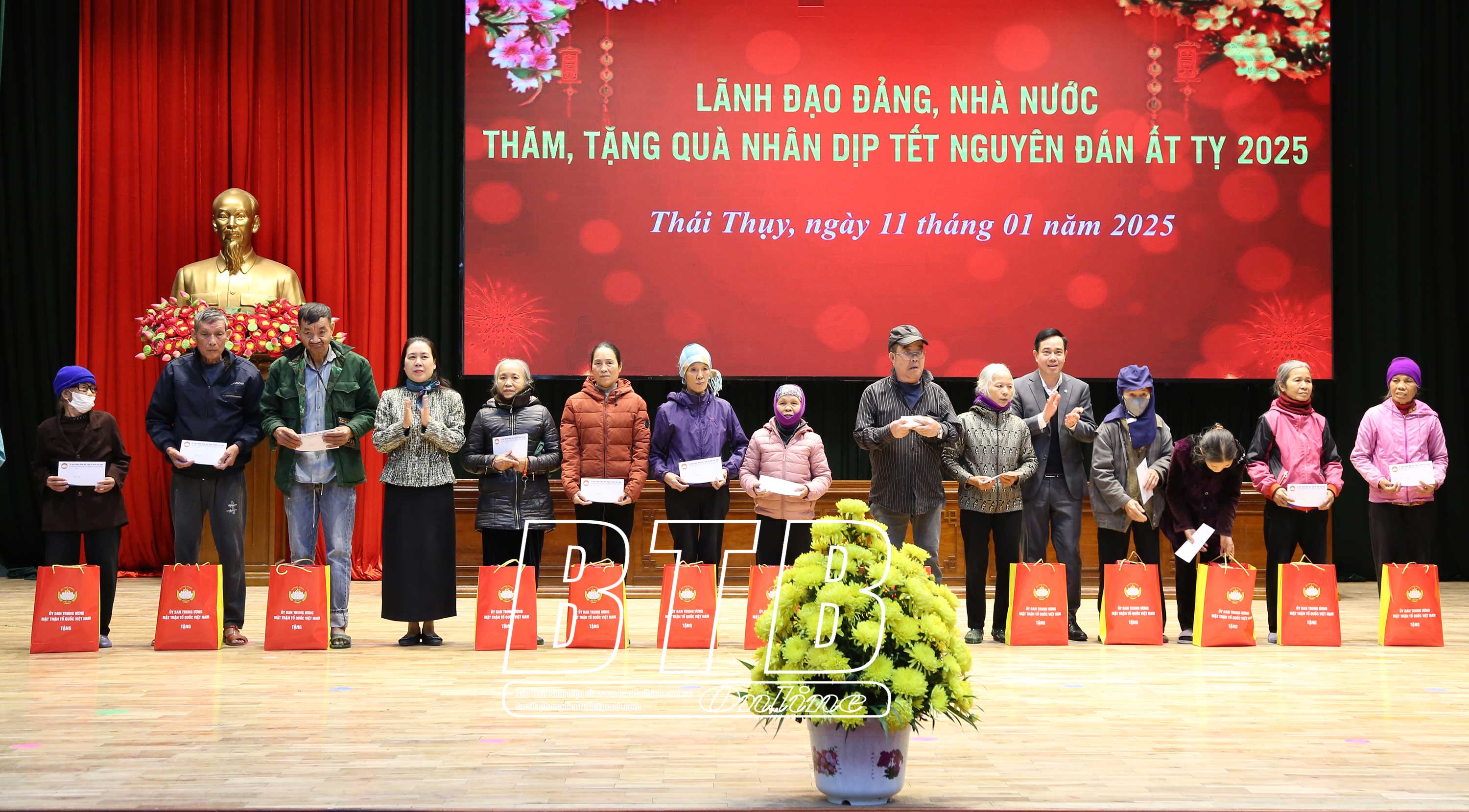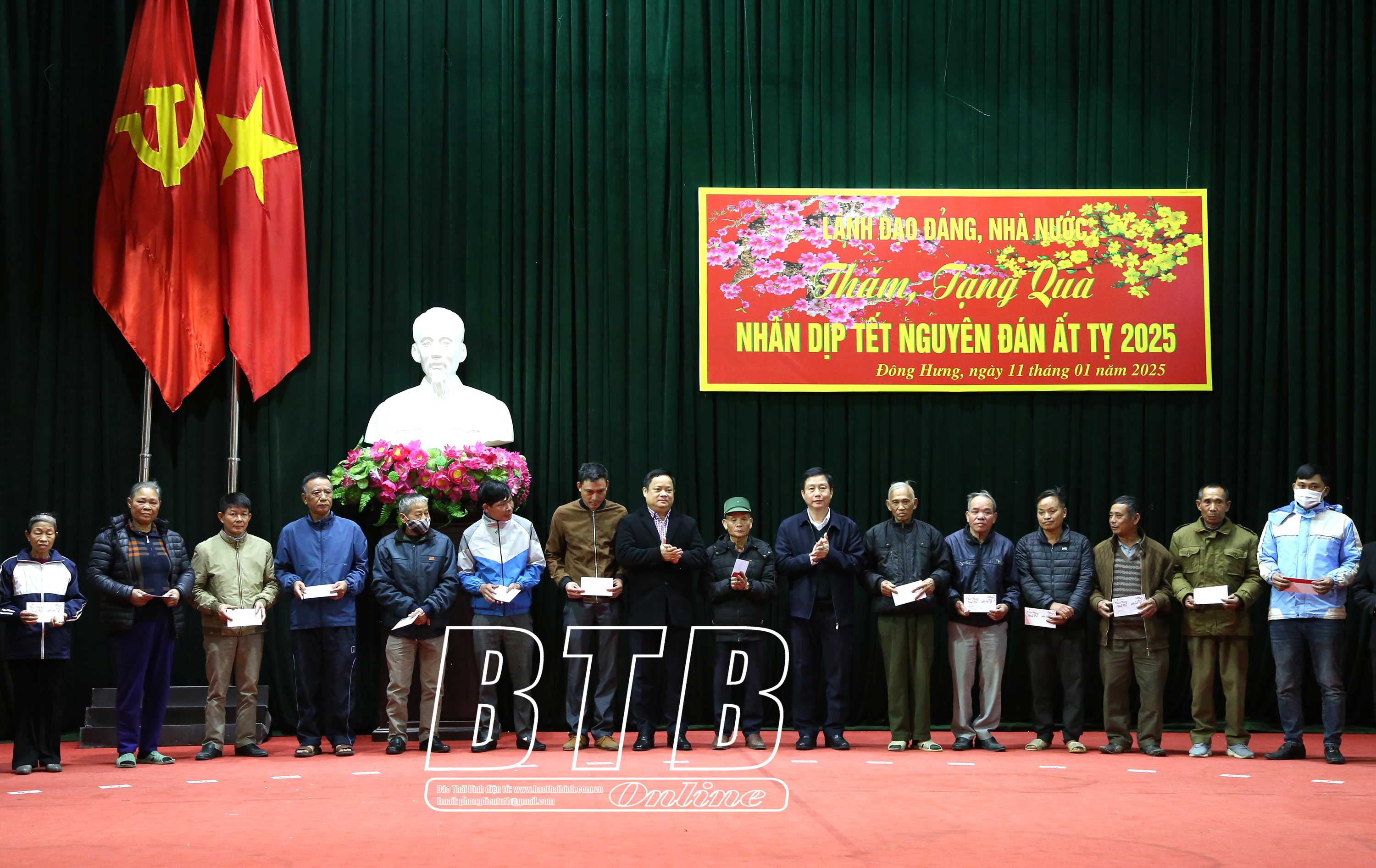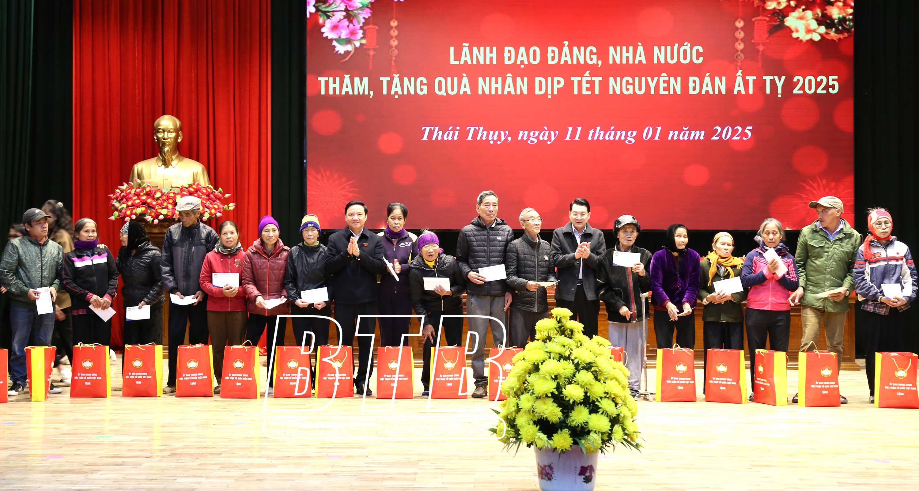 Đồng chí khẳng định: Đảng, Nhà nước luôn quan tâm, chăm lo đến cuộc sống của người dân, đặc biệt là những người nghèo, người có hoàn cảnh khó khăn, các đối tượng chính sách, những người yếu thế. Tỉnh Thái Bình nói chung, huyện Thái Thụy nói riêng đã rất quan tâm, dành ngân sách, đồng thời vận động các nhà hảo tâm, các doanh nghiệp để chăm lo tết cho người dân, bảo đảm tất cả các hộ nghèo, hộ cận nghèo, gia đình chính sách, công nhân có hoàn cảnh khó khăn đều có quà tết.