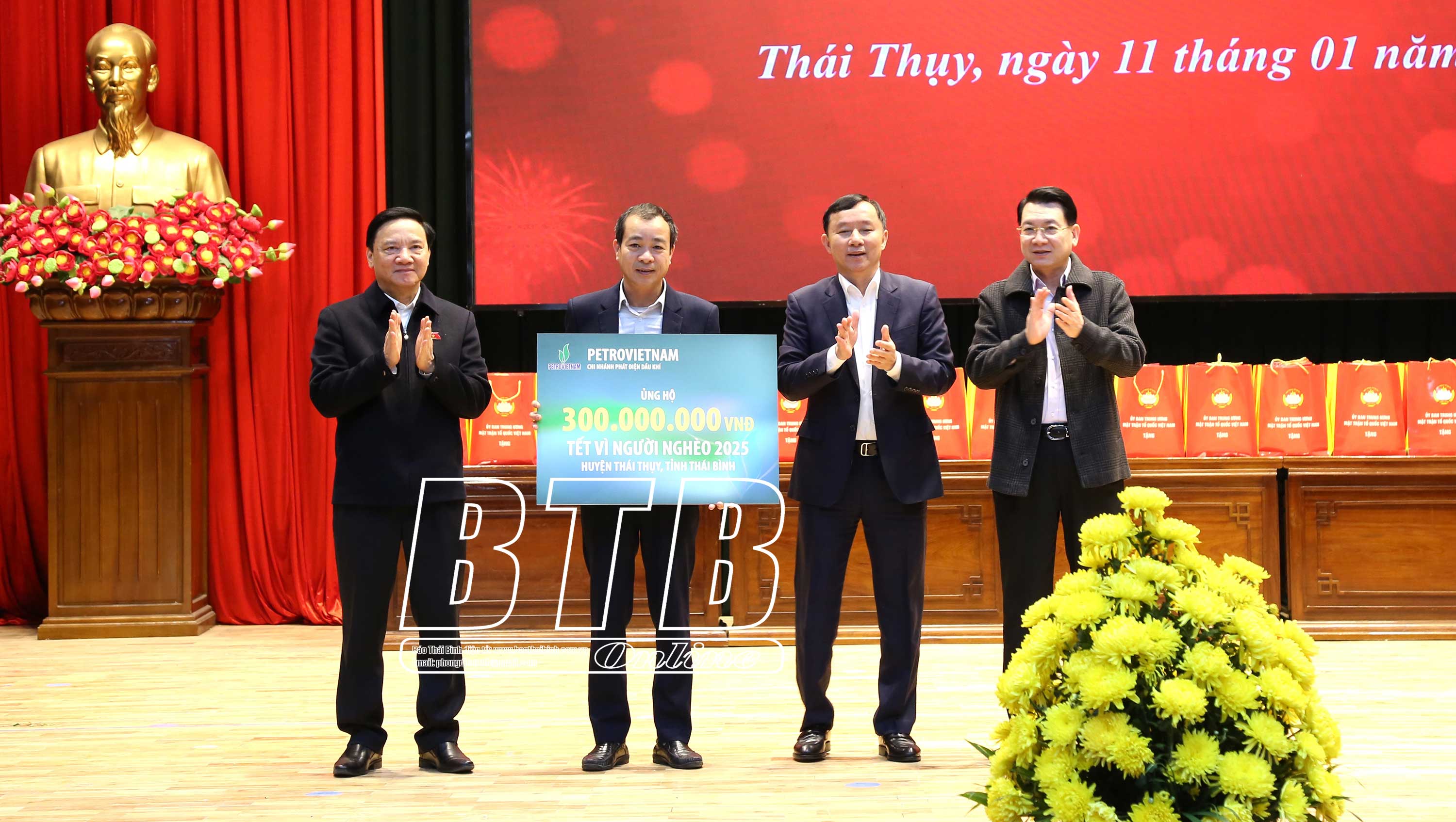 Nhân dịp này, Tập đoàn Dầu khí Việt Nam trao tặng 300 triệu đồng cho các hộ nghèo, hộ có hoàn cảnh khó khăn, gia đình chính sách trên địa bàn huyện Thái Thụy.