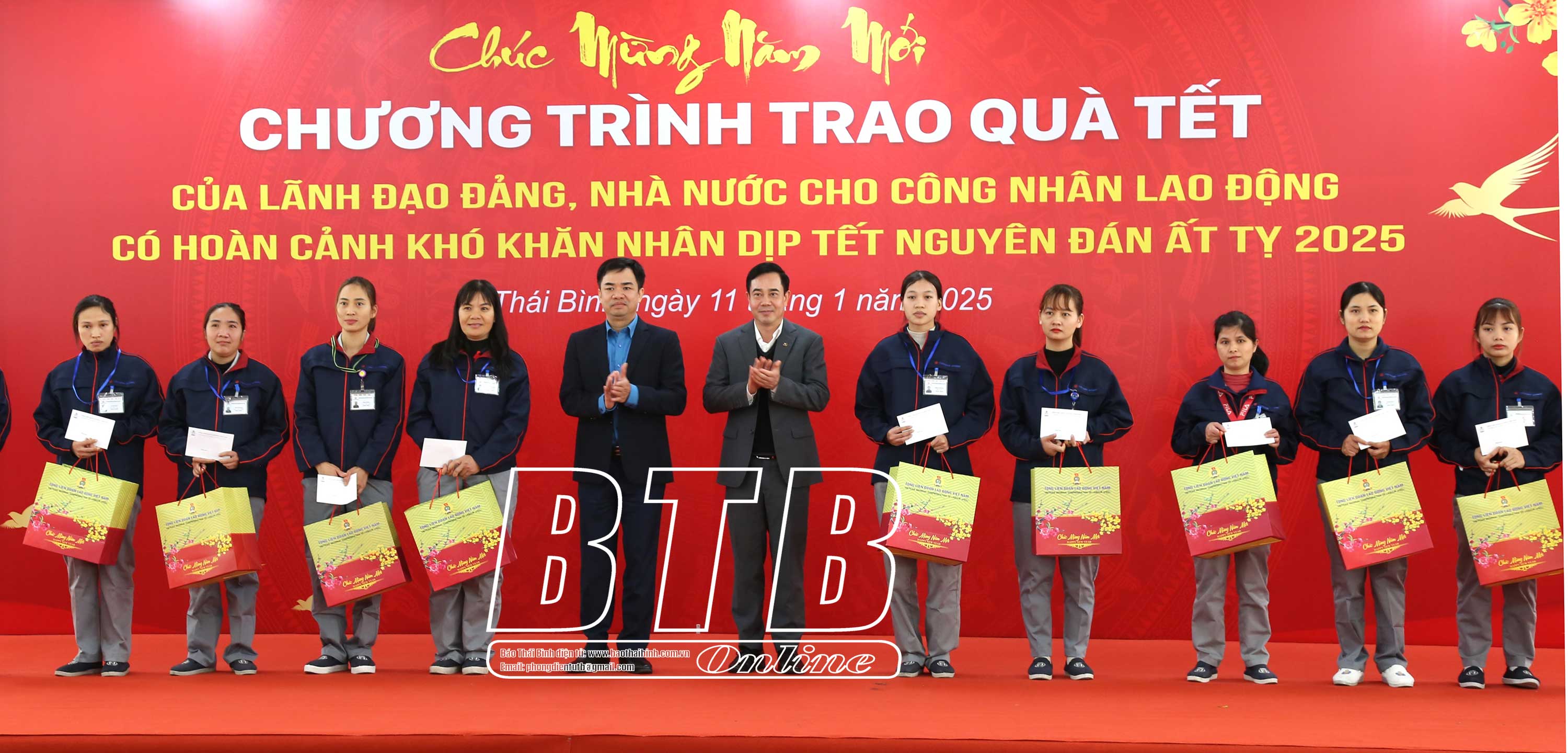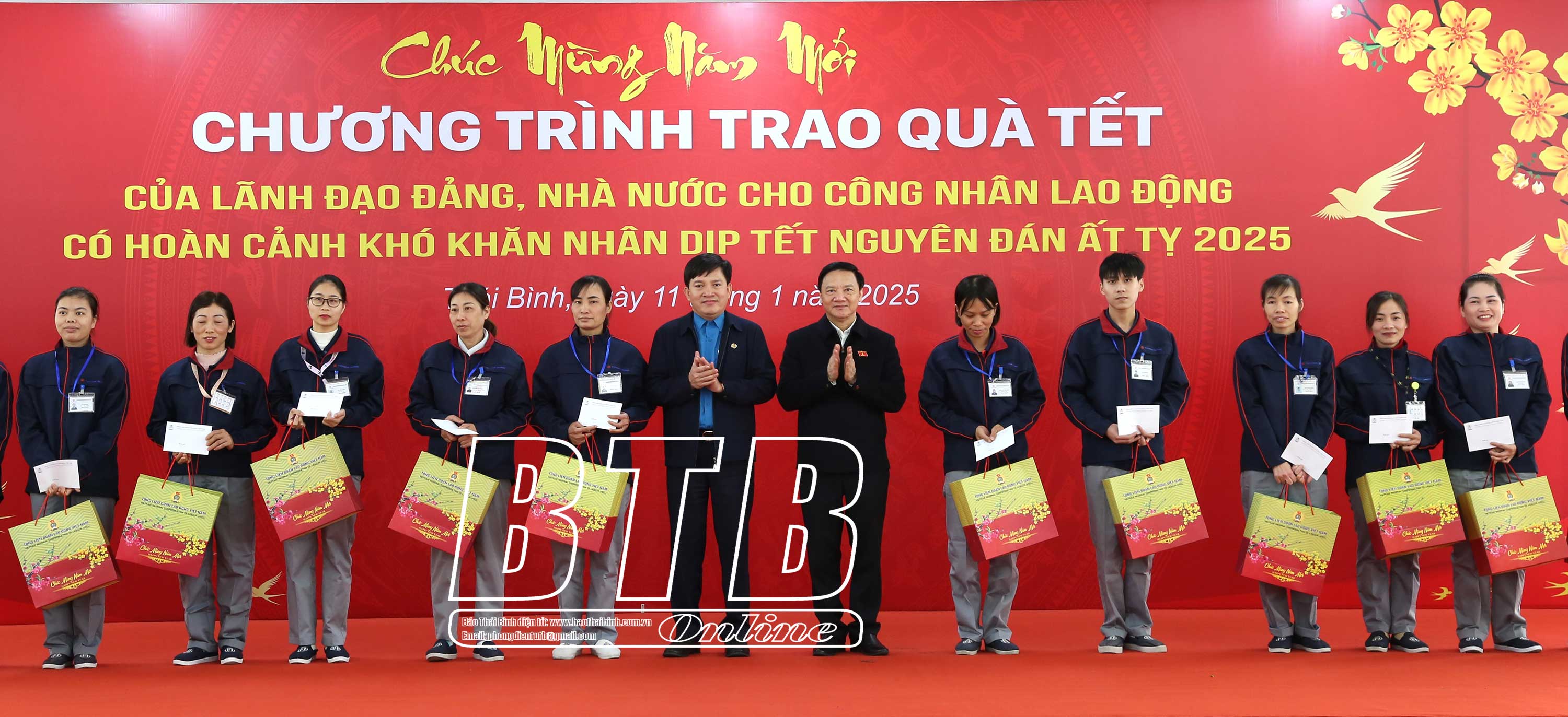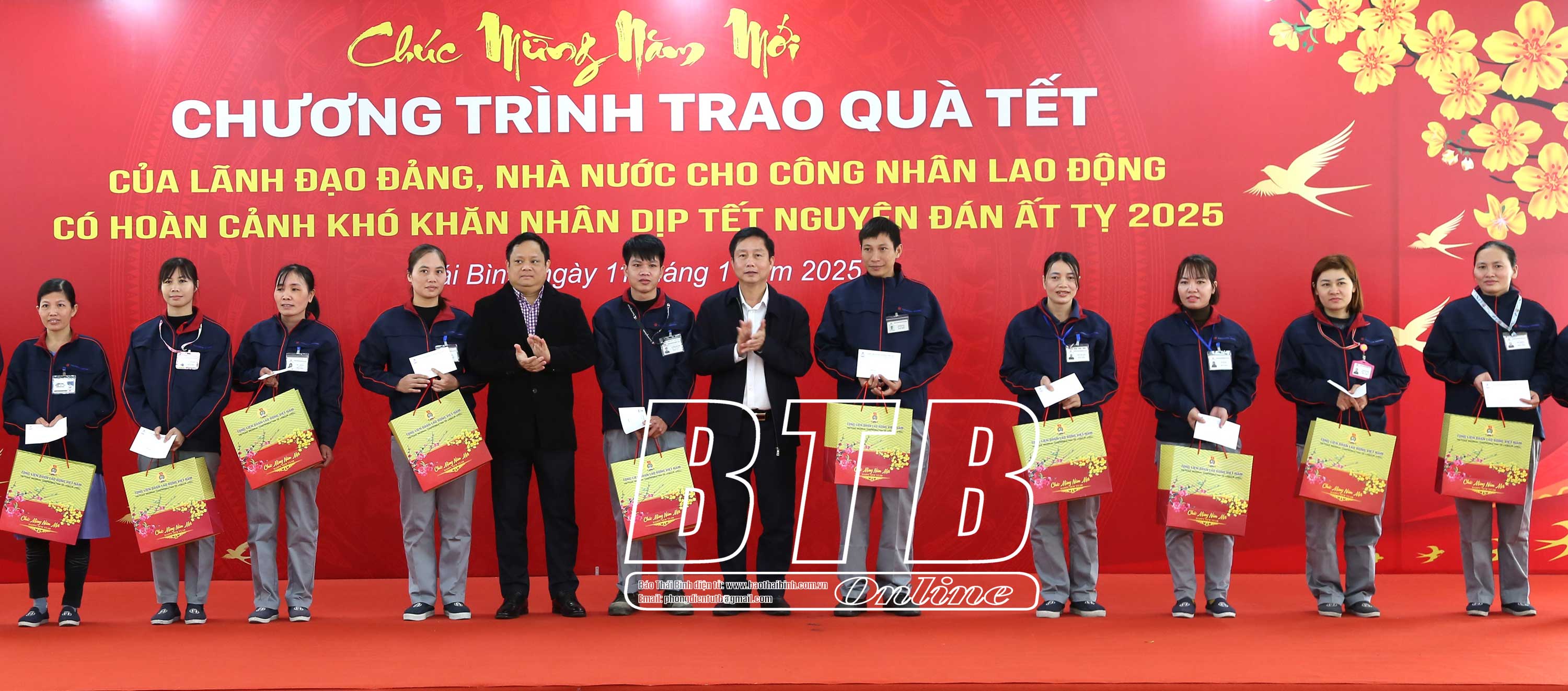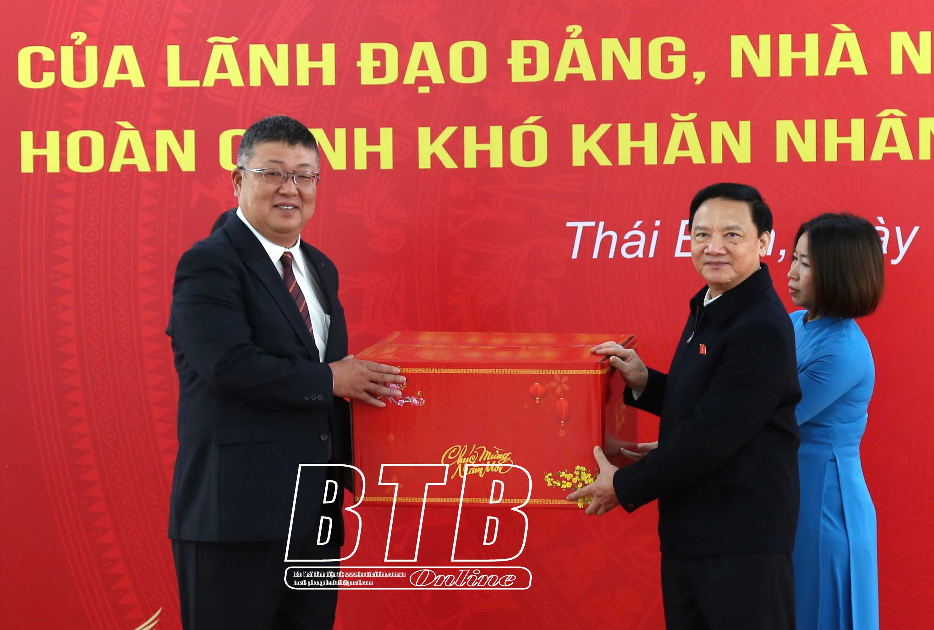 Tiếp đó, đồng chí Phó Chủ tịch Quốc hội cùng các đồng chí lãnh đạo tỉnh đã đến thăm, chúc tết và trao 200 suất quà cho người lao động tại Nhà máy Toyoda Gosei tại Thái Bình của Tập đoàn sản xuất phụ tùng ô tô hàng đầu Nhật Bản. Bày tỏ sự vui mừng, phấn khởi, đồng chí Phó Chủ tịch Quốc hội cho biết đây là năm thứ tư liên tiếp được lãnh đạo Đảng, Nhà nước phân công thăm hỏi, động viên, tặng quà chúc tết người lao động có hoàn cảnh khó khăn, gia đình chính sách, hộ nghèo tại tỉnh Thái Bình. Đồng chí mong muốn Nhà máy Toyoda Gosei tại Thái Bình nói riêng, các cấp công đoàn và đoàn viên, người lao động trên địa bàn tỉnh nói chung chấp hành tốt chủ trương, chính sách, pháp luật của Đảng, Nhà nước tiếp tục phát huy tinh thần đoàn kết, hăng say lao động sản xuất đóng góp vào sự phát triển chung của tỉnh.