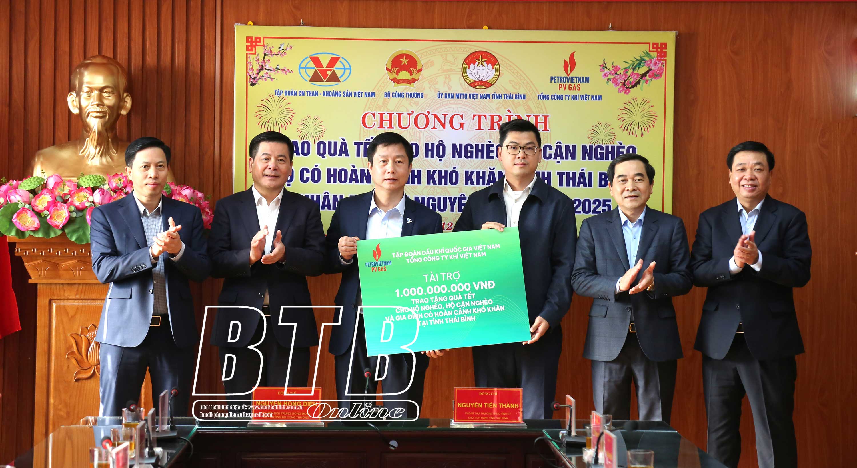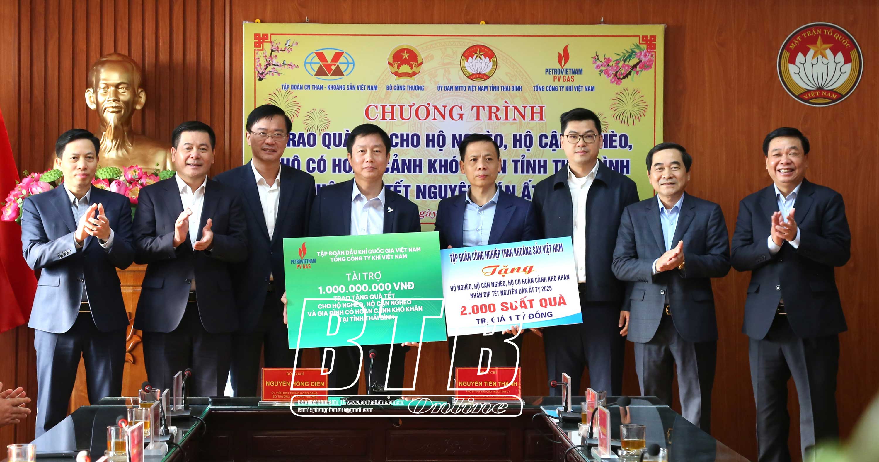 Thông qua Ủy ban MTTQ tỉnh, đồng chí Bộ trưởng Bộ Công Thương và lãnh đạo Tập đoàn Công nghiệp Than - Khoáng sản Việt Nam đã trao tặng 2.000 suất quà tổng trị giá 1 tỷ đồng cho hộ nghèo, hộ cận nghèo, hộ có hoàn cảnh khó khăn của tỉnh Thái Bình; lãnh đạo Tổng Công ty Khí Việt Nam cũng trao tặng 1 tỷ đồng cho quỹ “Vì người nghèo” của tỉnh Thái Bình.