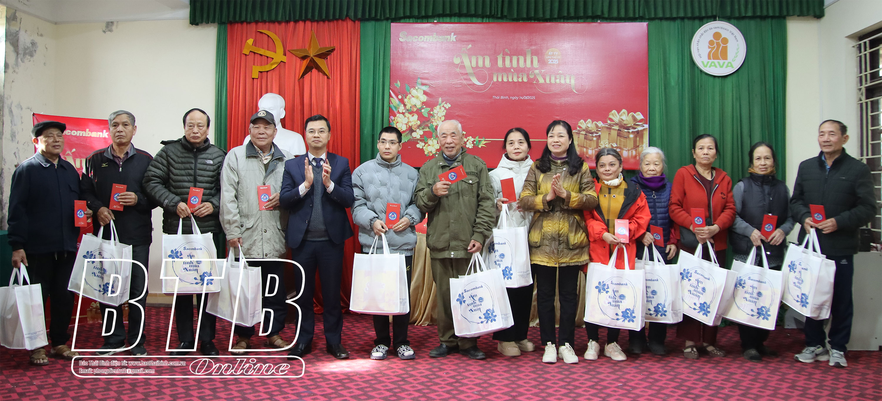 Dịp tết Nguyên đán Ất Tỵ năm 2025, Sacombank chi nhánh Thái Bình trao 120 suất quà, tổng trị giá 60 triệu đồng cho các gia đình chính sách, trẻ em, người già neo đơn, nạn nhân chất độc da cam, người khuyết tật trên địa bàn tỉnh Thái Bình.