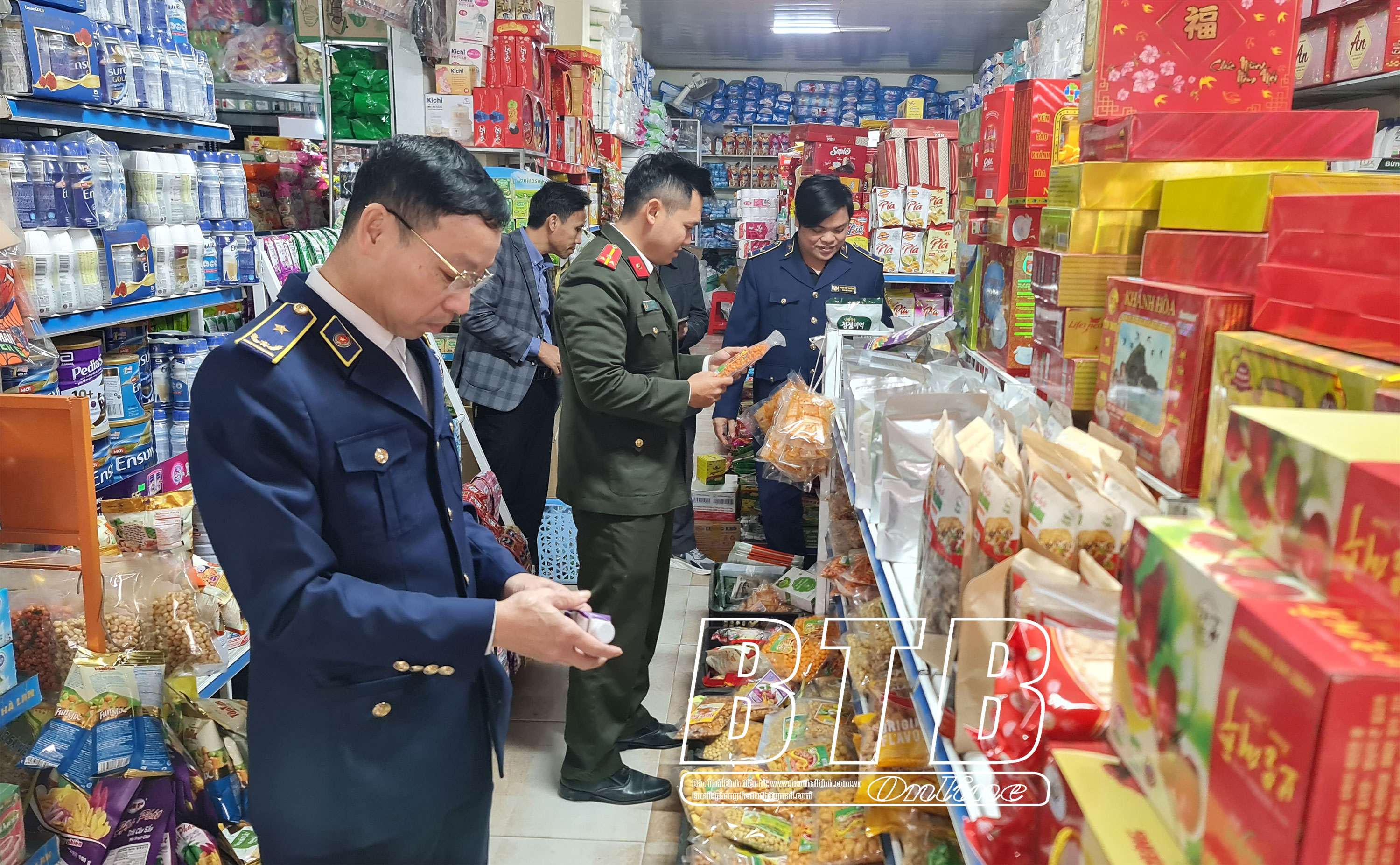 Sáng ngày 9/1, lực lượng quản lý thị trường đội số 5 (Tiền Hải, Kiến Xương) phối hợp với các phòng, ban, ngành của huyện Tiền Hải tổ chức đoàn liên ngành kiểm tra đột xuất theo chuyên đề bảo đảm an toàn vệ sinh thực phẩm đối với các doanh nghiệp, cơ sở kinh doanh tại xã Nam Thịnh và xã Nam Tiến (Tiền Hải). Kiểm tra tại cửa hàng tự chọn T.Tr tại thôn Ái Quốc, xã Nam Tiến, lực lượng chức năng phát hiện một số hành vi vi phạm như bảo quản sản phẩm không đúng quy định, kinh doanh hàng hóa không niêm yết giá; đã tiến hành lập biên bản, xử phạt hành chính hộ kinh doanh này gần 3 triệu đồng, đồng thời yêu cầu khắc phục triệt để sai phạm, không tái diễn.