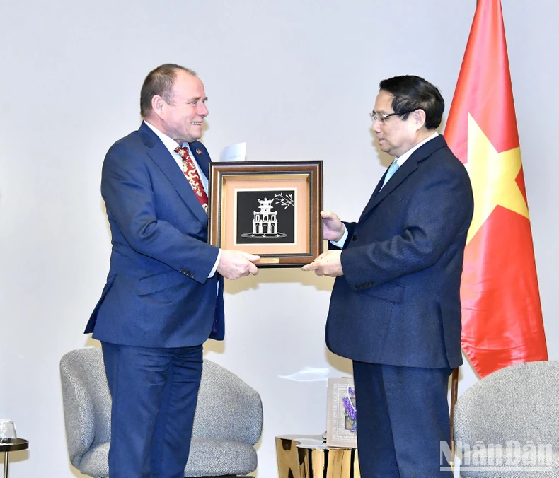 Thủ tướng Phạm Minh Chính và Chủ tịch Hội Hữu nghị Czech-Việt Nam Milos Kusy. (Ảnh: THANH GIANG)