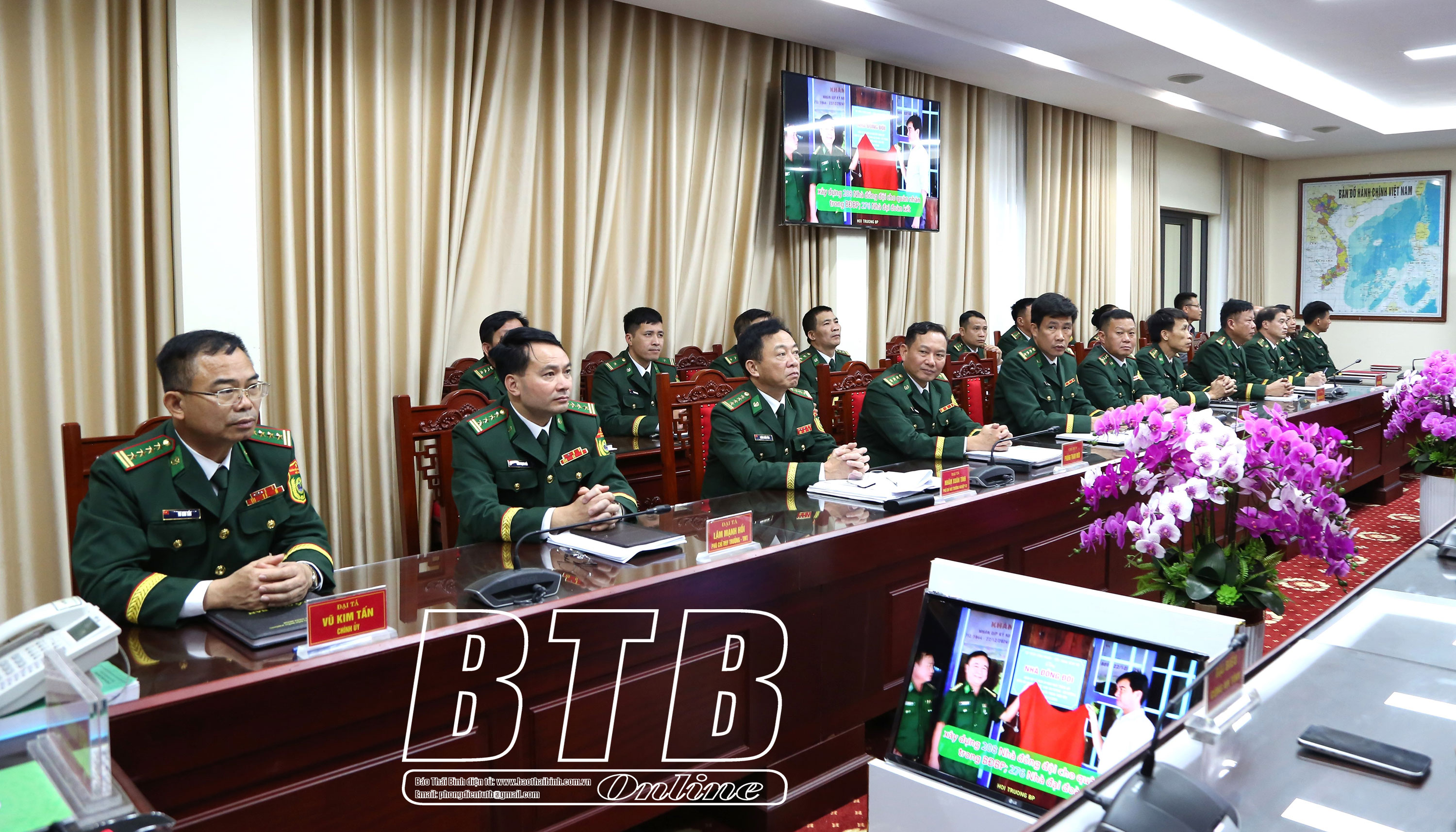 Đồng chí Nguyễn Khắc Thận, Bí thư Tỉnh ủy, Bí thư Đảng uỷ Quân sự tỉnh dự hội nghị tại điểm cầu Bộ Chỉ huy BĐBP tỉnh.