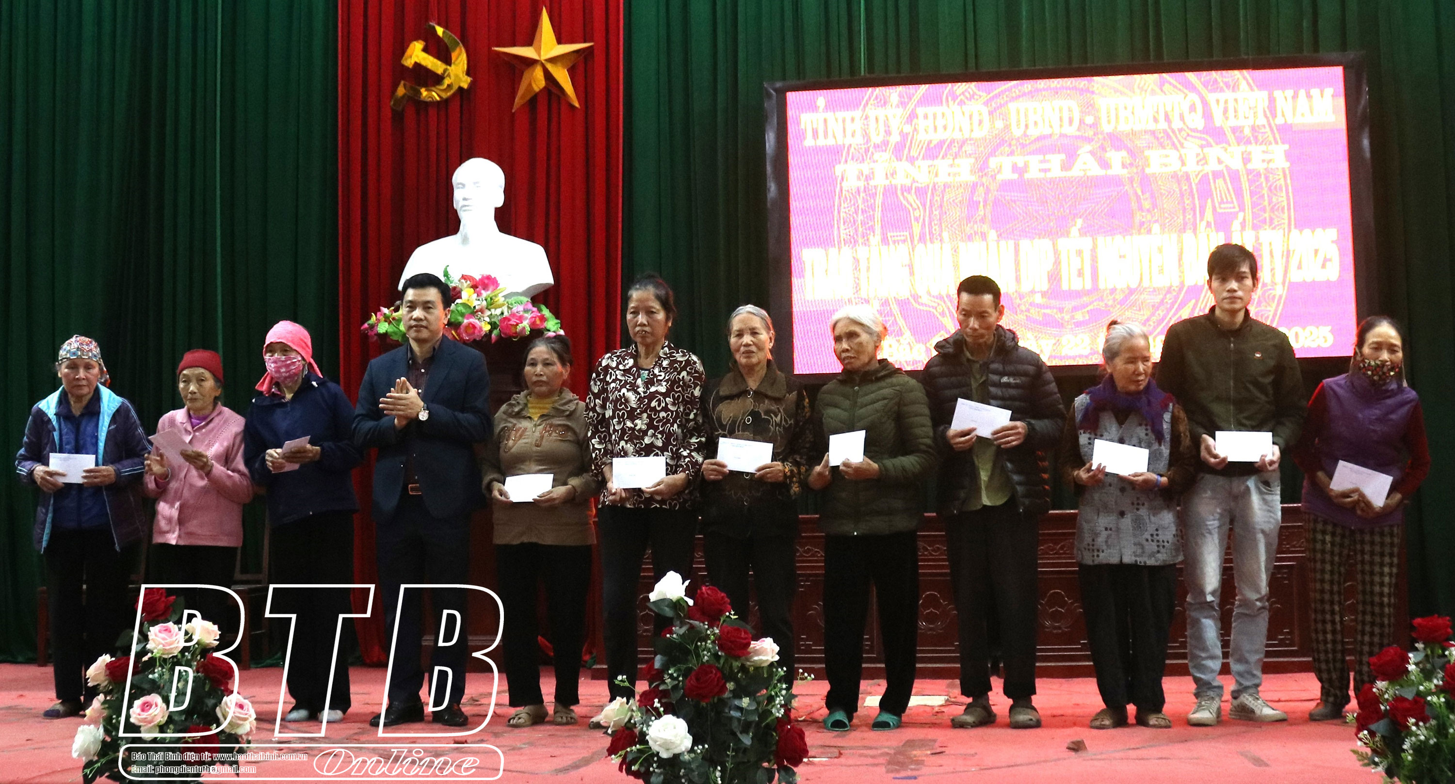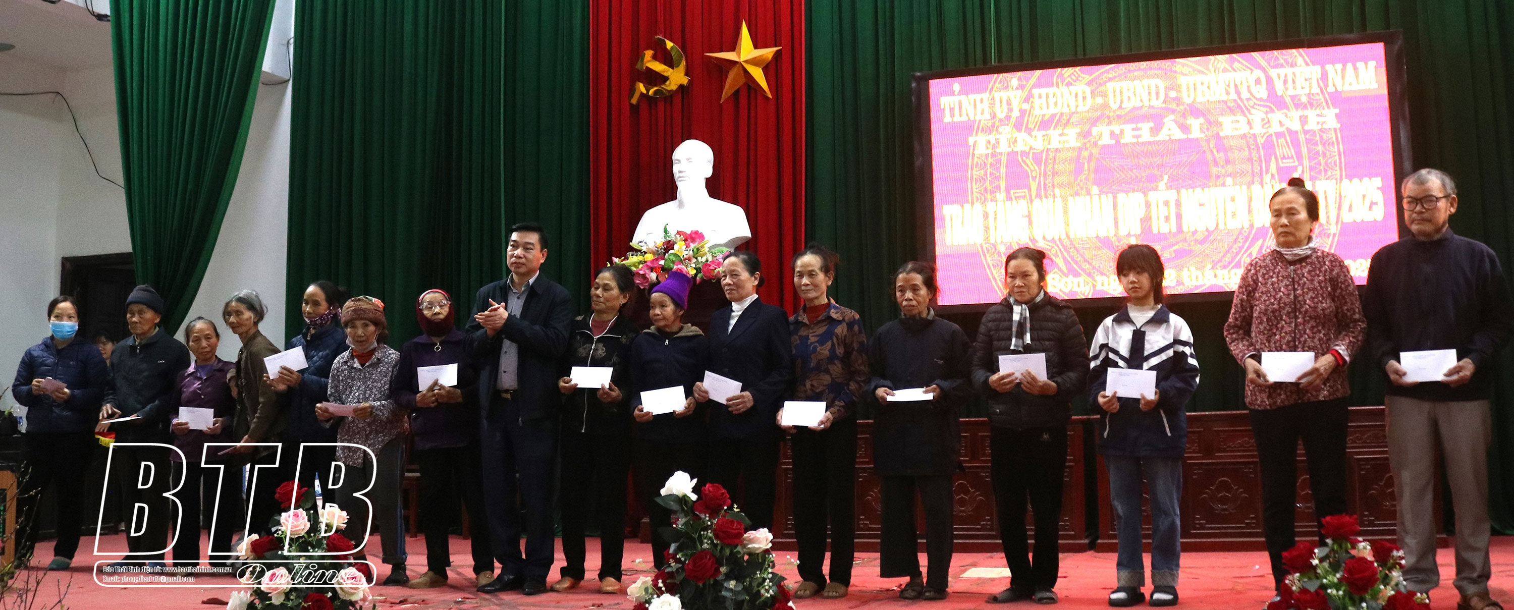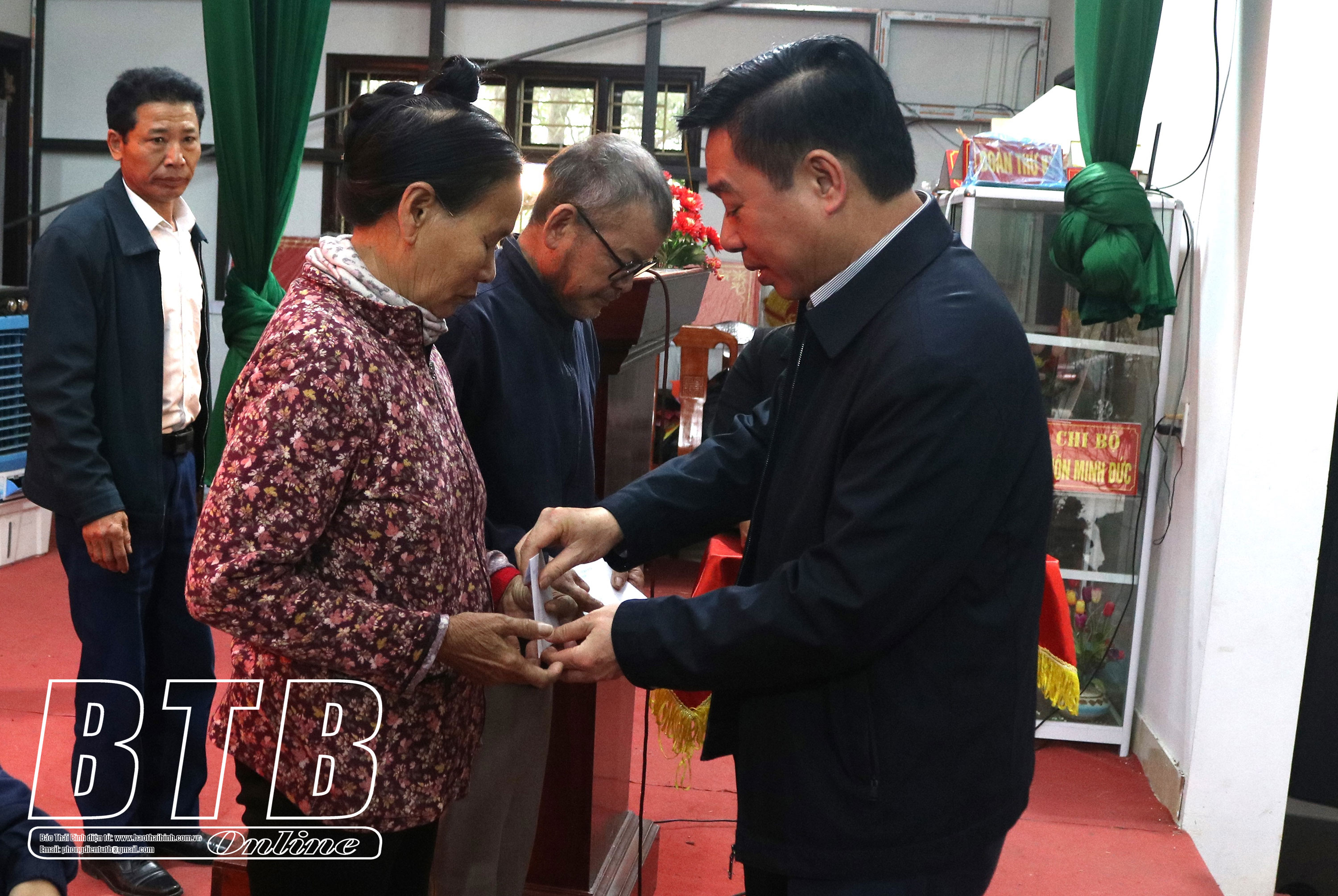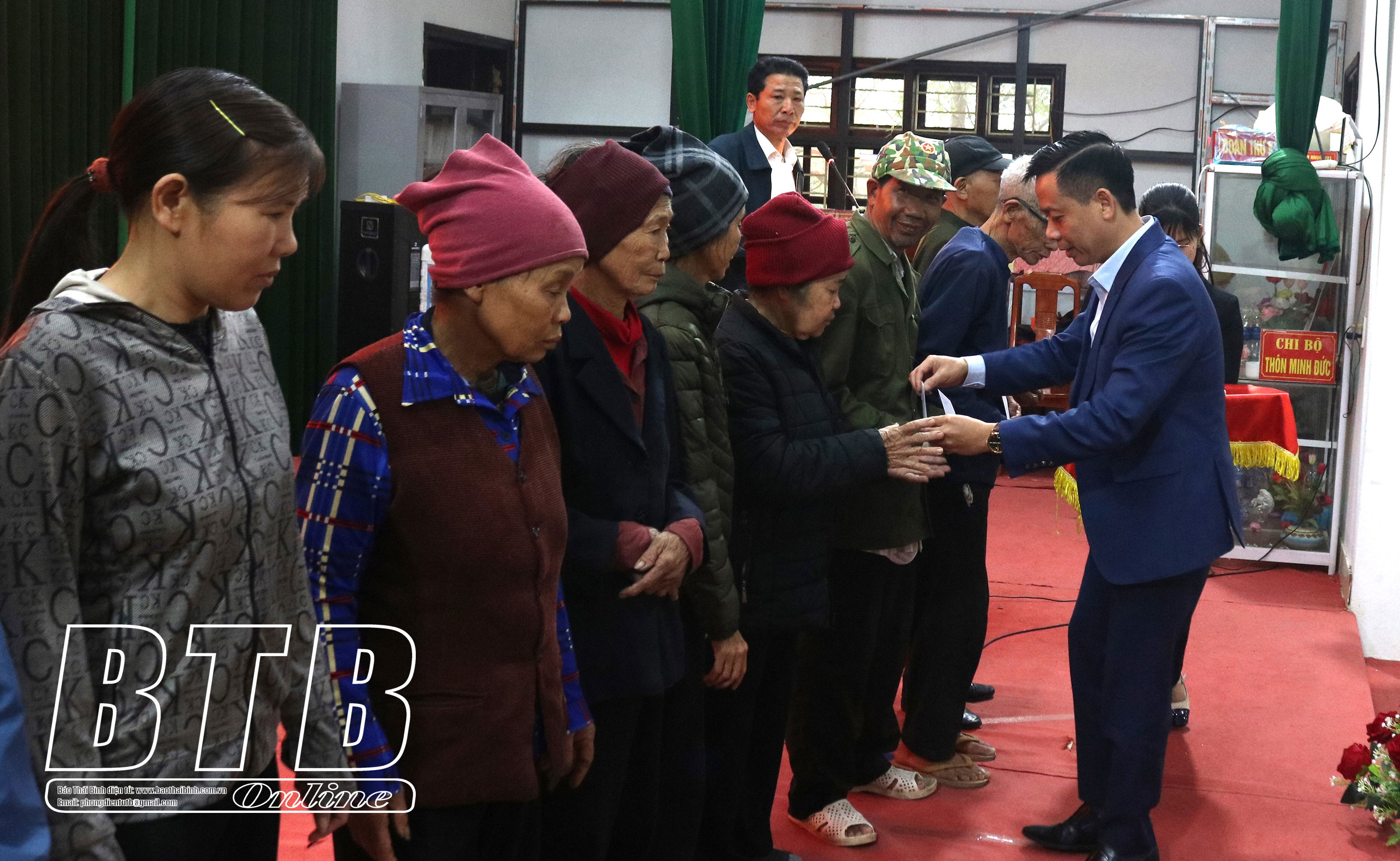 Lãnh đạo huyện Hưng Hà trao quà cho hộ nghèo, hộ cận nghèo và hộ có hoàn cảnh khó khăn xã Bắc Sơn.