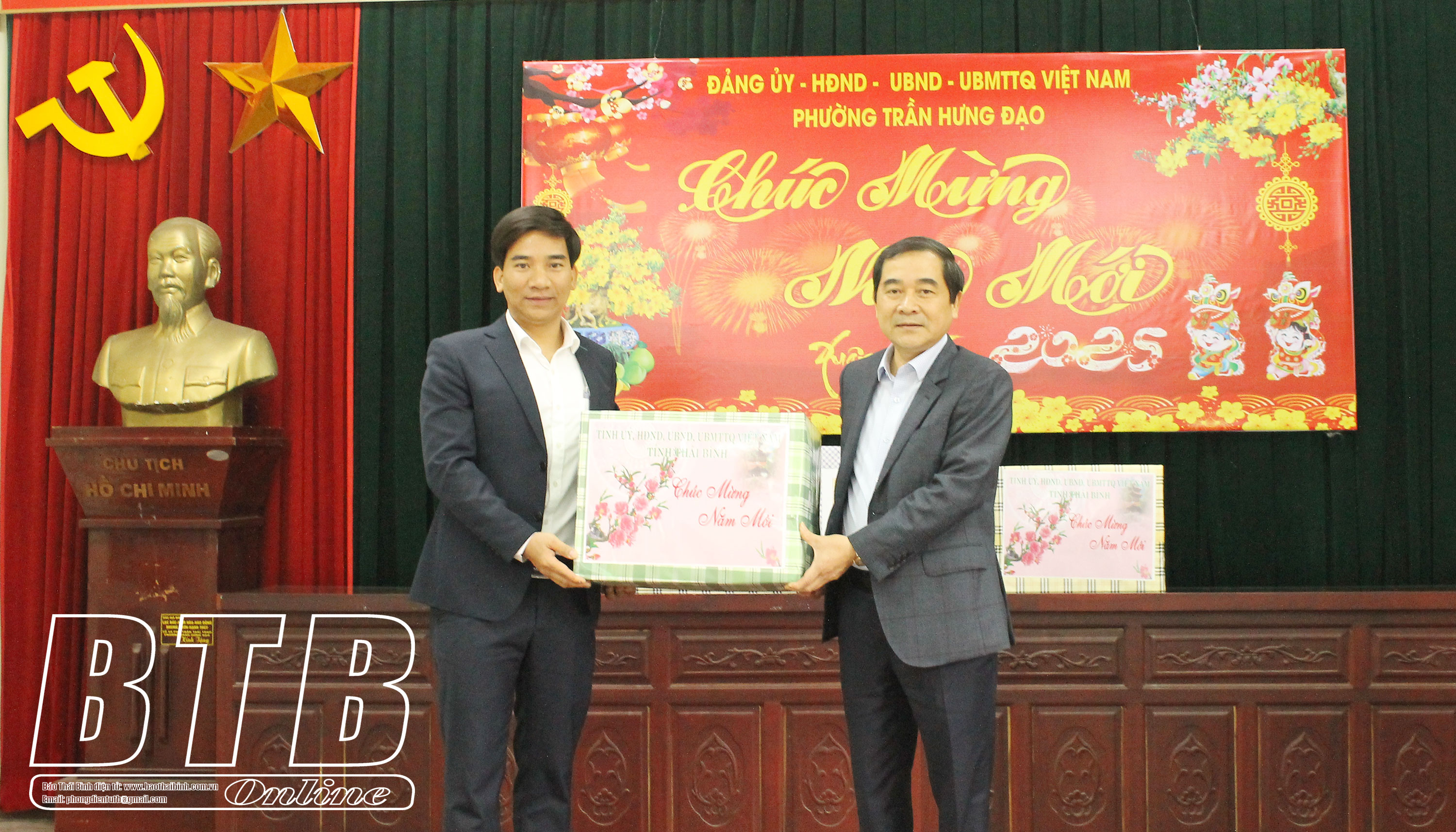 Tặng quà, động viên cán bộ, nhân dân và các lực lượng làm nhiệm vụ trực tết trên địa bàn, đồng chí Nguyễn Tiến Thành, Phó Bí thư thường trực Tỉnh ủy, Chủ tịch HĐND tỉnh ghi nhận và đánh giá cao sự chủ động của phường Trần Hưng Đạo trong việc triển khai các nhiệm vụ chính trị, bảo đảm an ninh trật tự dịp tết Nguyên đán Ất Tỵ 2025.