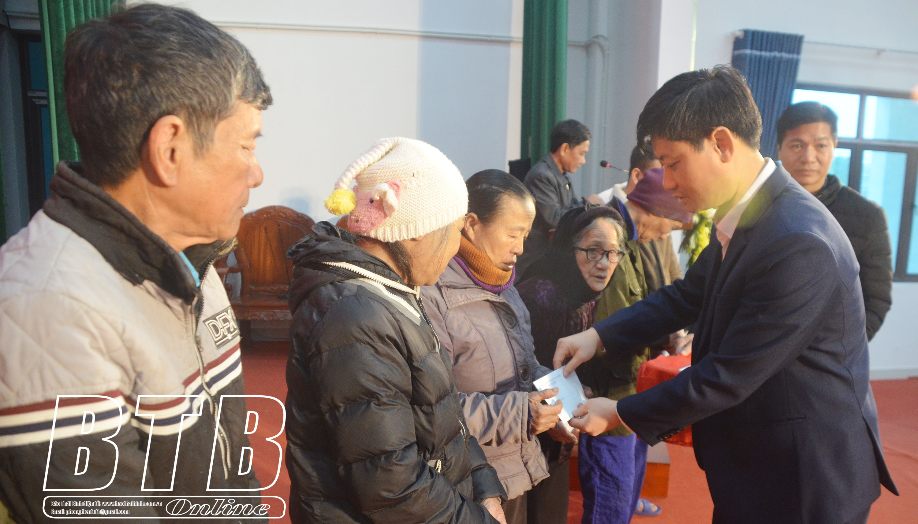 Lãnh đạo huyện Quỳnh Phụ trao quà cho hộ nghèo, hộ cận nghèo và hộ có hoàn cảnh khó khăn xã Quỳnh Hồng.