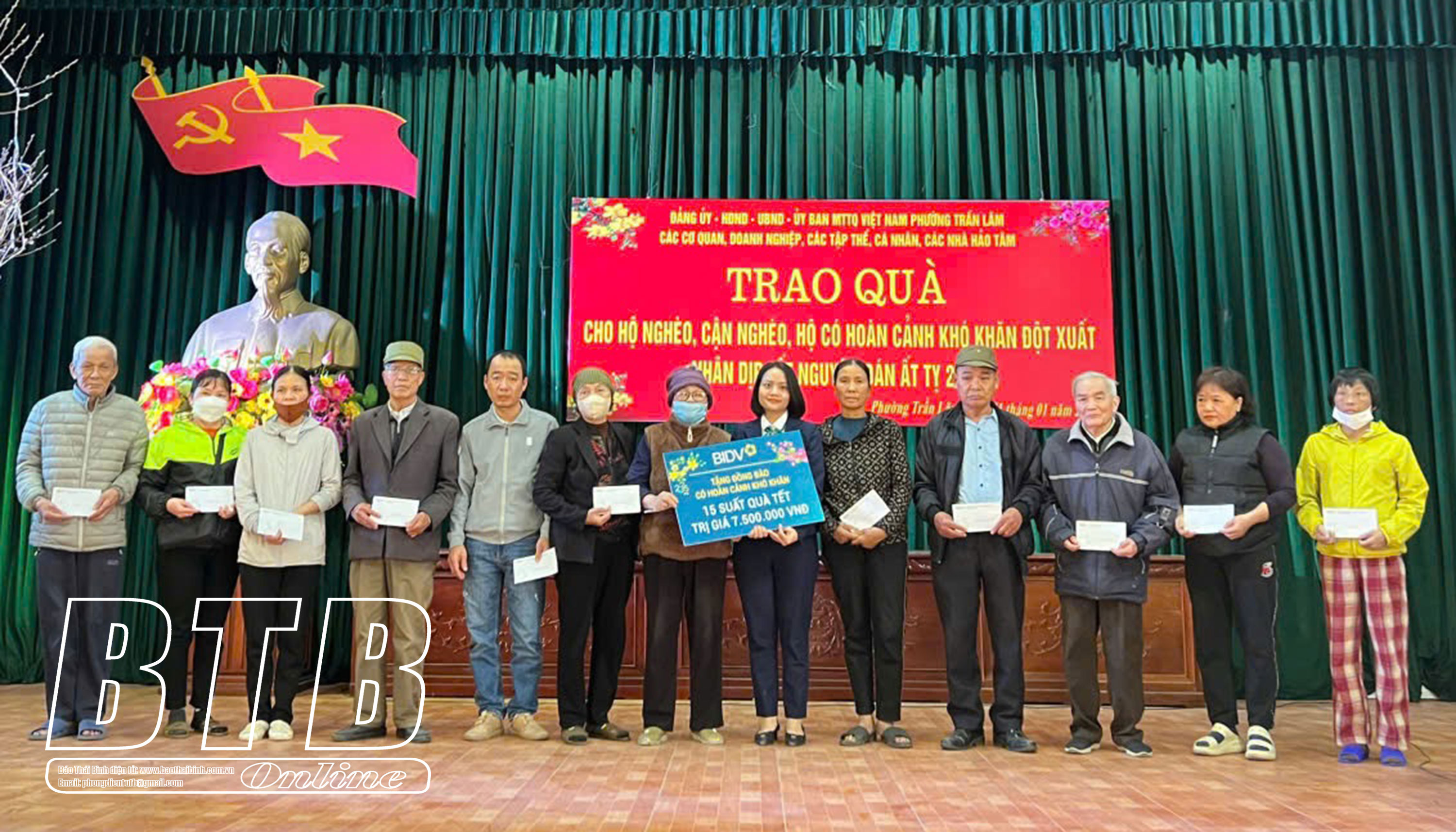 Đại diện BIDV Thái Bình trao tặng 15 suất quà cho hộ nghèo, hộ cận nghèo, hộ có hoàn cảnh khó khăn đột xuất của phường Trần Lãm (thành phố Thái Bình).
