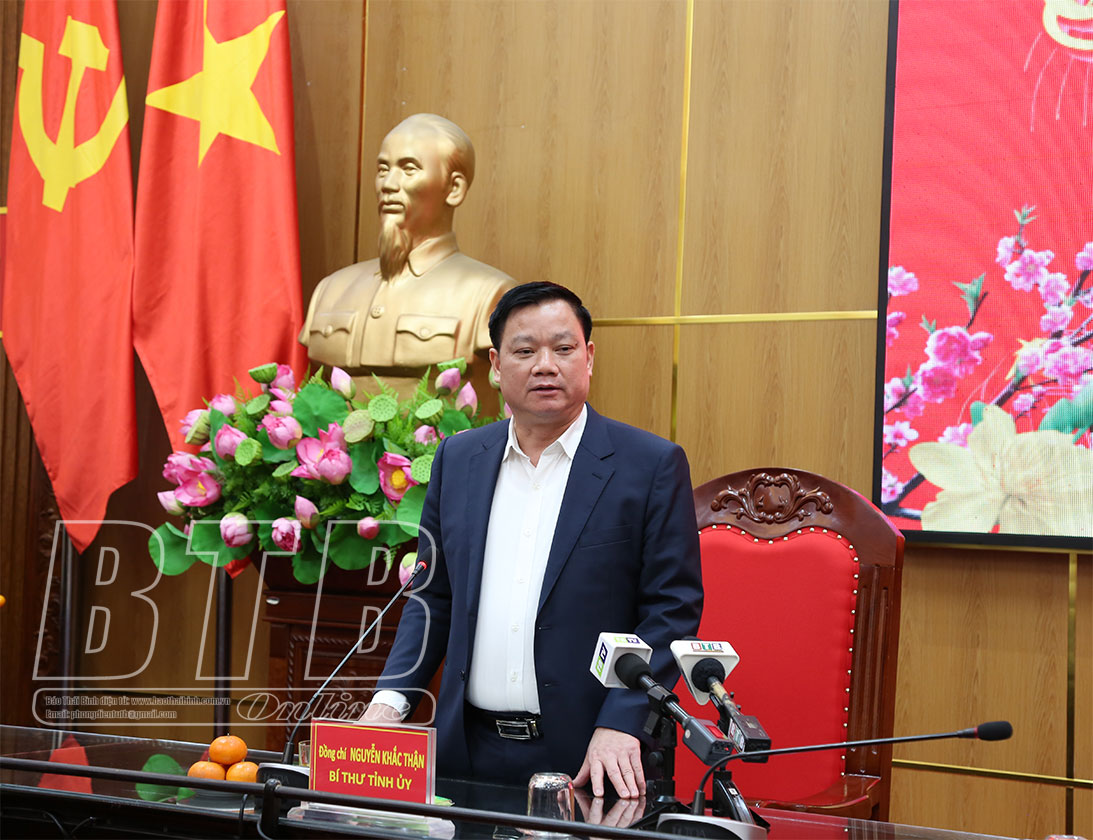 Ngày 27/1 (tức 28 tết), đồng chí Nguyễn Khắc Thận, Bí thư Tỉnh ủy đi thăm, chúc tết và kiểm tra, chỉ đạo việc thực hiện các nhiệm vụ trước, trong và sau tết Nguyên đán Ất Tỵ 2025 tại huyện Quỳnh Phụ, Đông Hưng và các đơn vị: Công an tỉnh, Bộ Chỉ huy Bộ đội Biên phòng tỉnh.
